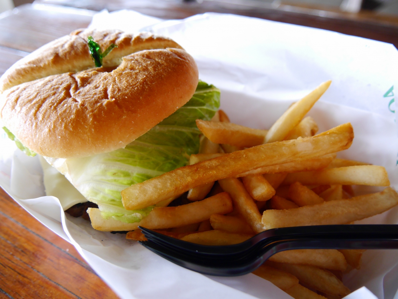 クアロアランチの牧場にいる牛を使ったハンバーガーです。