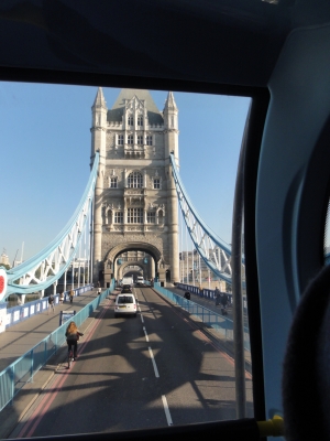 タワープリッジは、ロンドン塔のすぐ横にあり、テムズ川に架かる跳開式の可動橋です。バスで通りました。子供の頃口ずさんだ民謡の「ロンドン橋落ちた…」とは、違うそうです。ここでは、上部橋の展望台まで上がって中から観光も出来るそうです。又、機会があったら、そこから見える景色も見てみたいものです。
