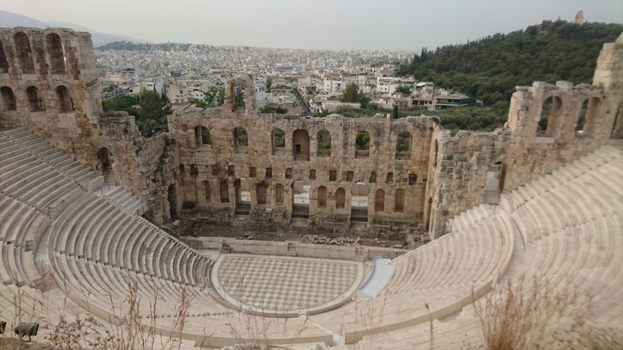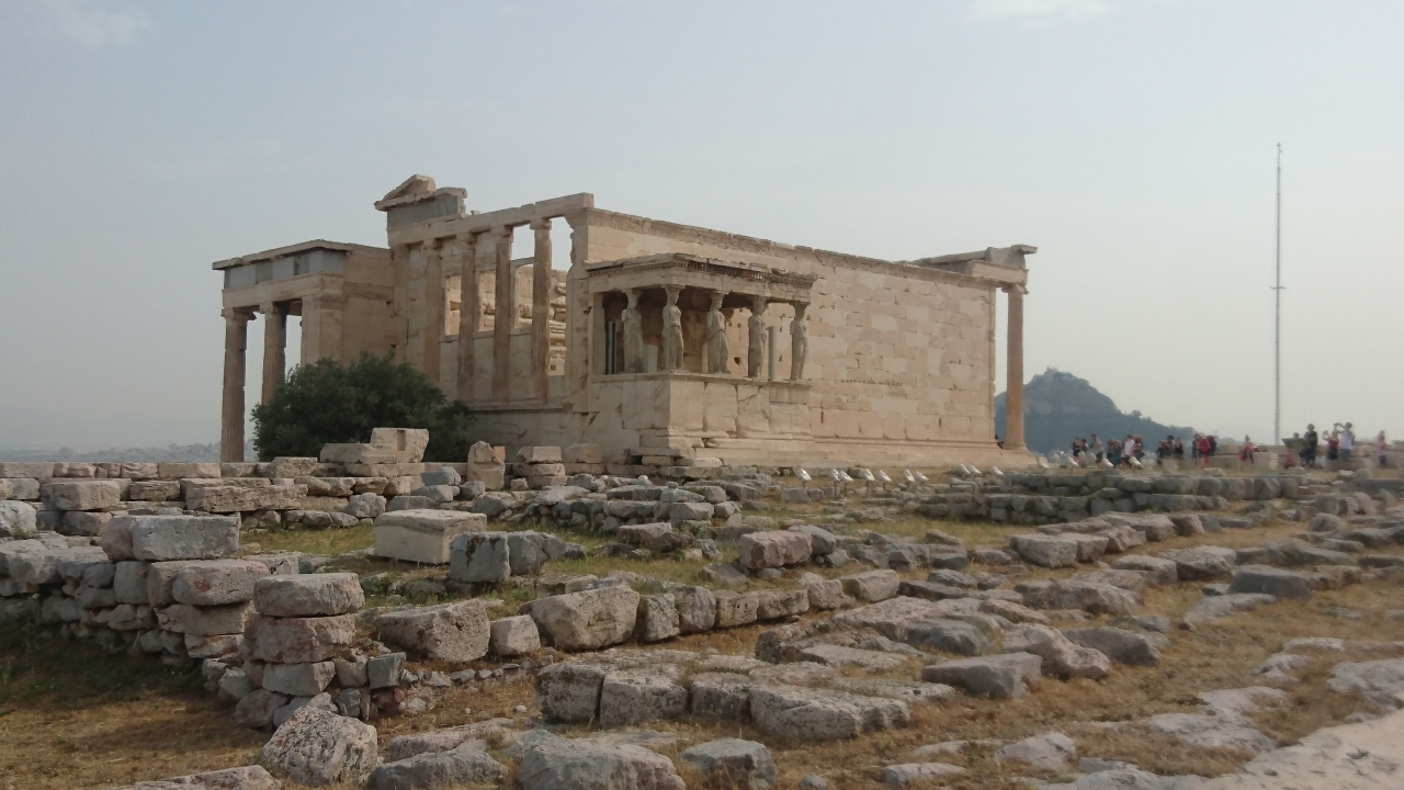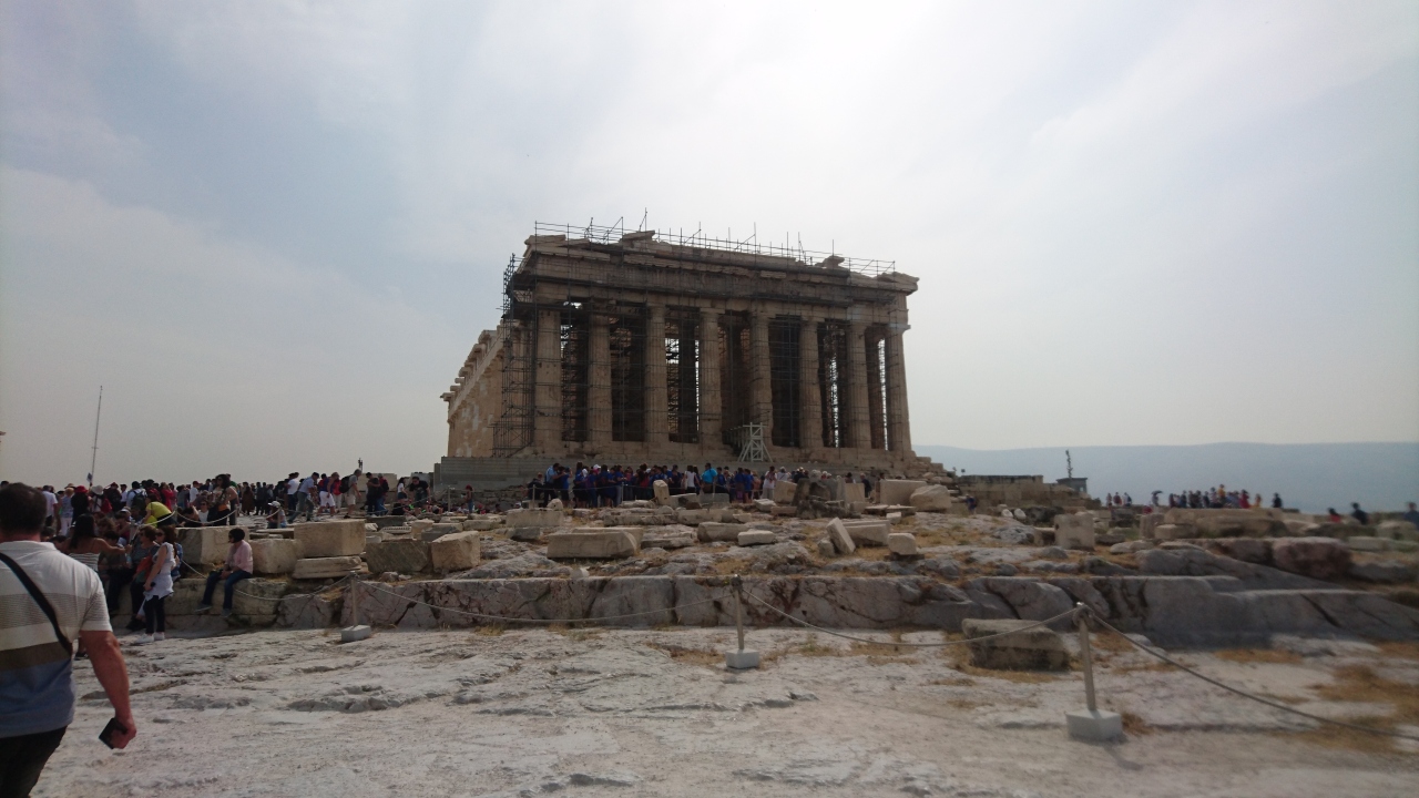 GWにツアーで訪れた。アテネの一番の観光スポット。9時半頃にはすでに観光客多い。大理石の道がとで滑りやすいので要注意。街も一望出来る。パルテノン神殿は修復(工事)中断中。エレクティオンのカリアティード(乙女の柱)は遠くからしか見られなかったが一番目をひく。