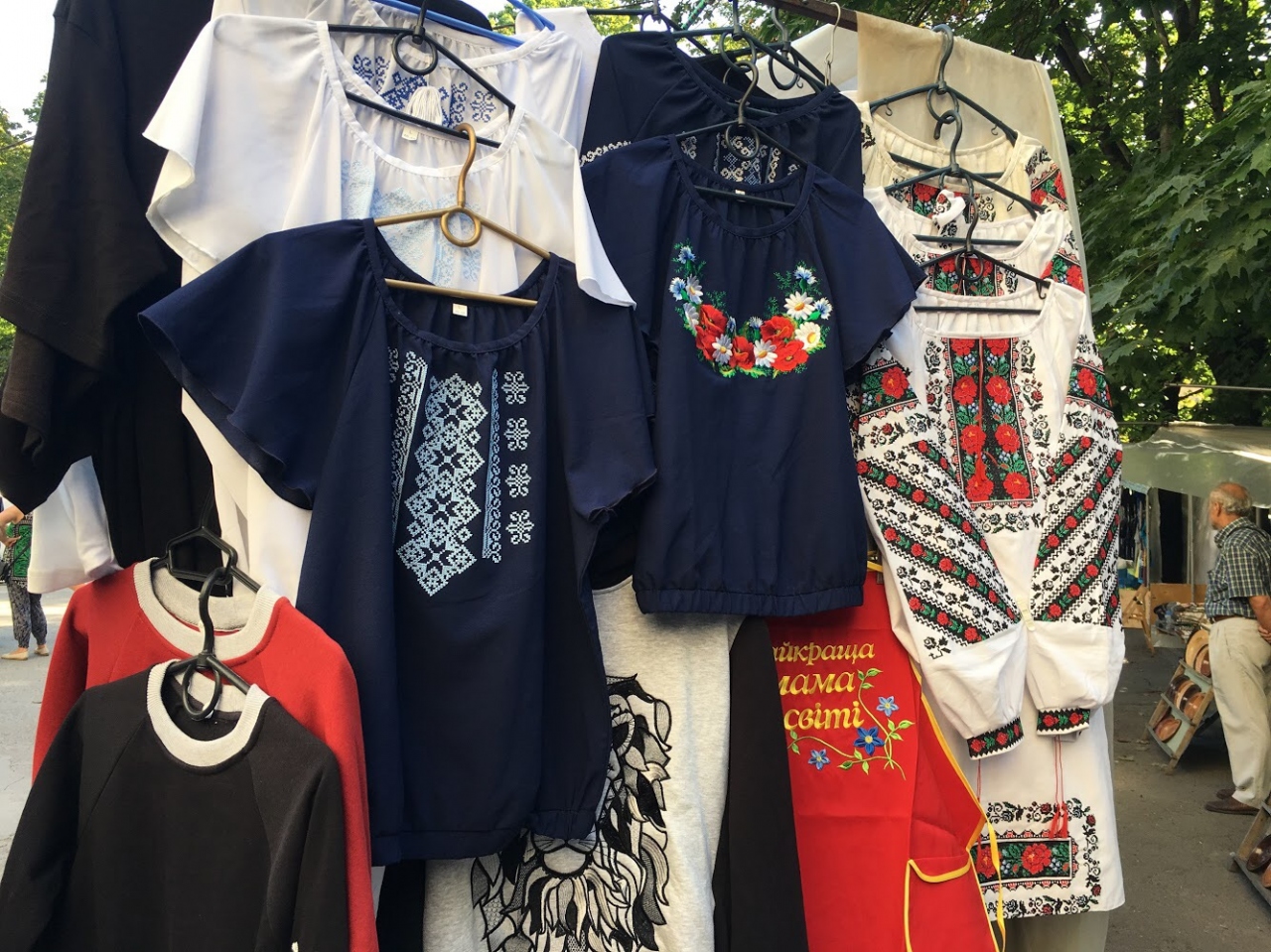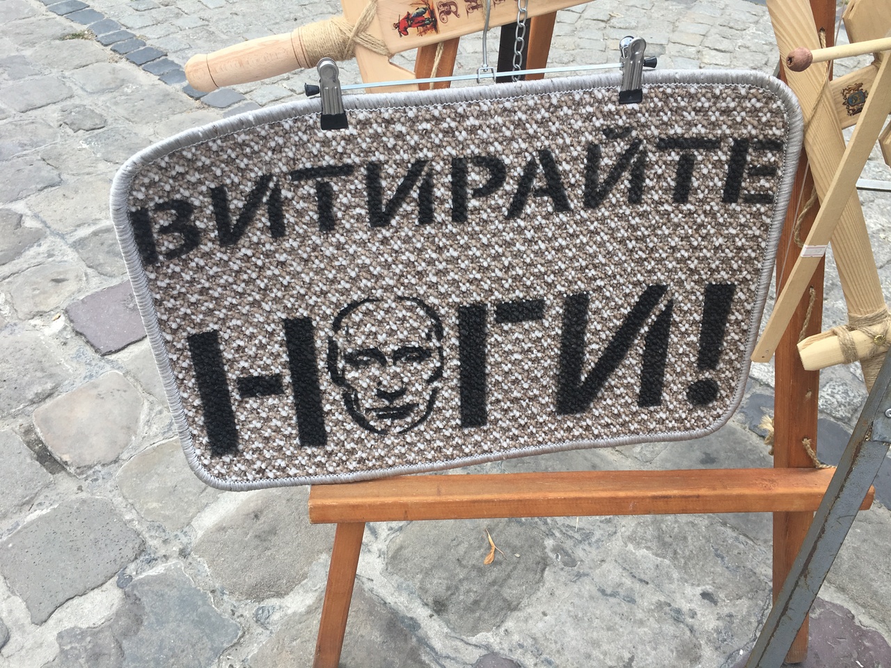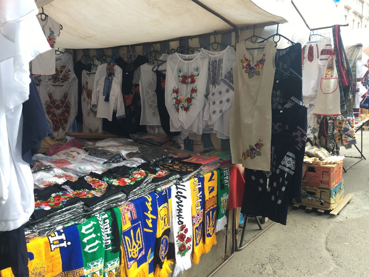 ウクライナの民族衣装や有名なウクライナ刺繍の小物をなどを売る店などもズラリと並び、その他にもウクライナ有名人のなんちゃってIDカードやプーチントイレットペーパーなども販売されています。