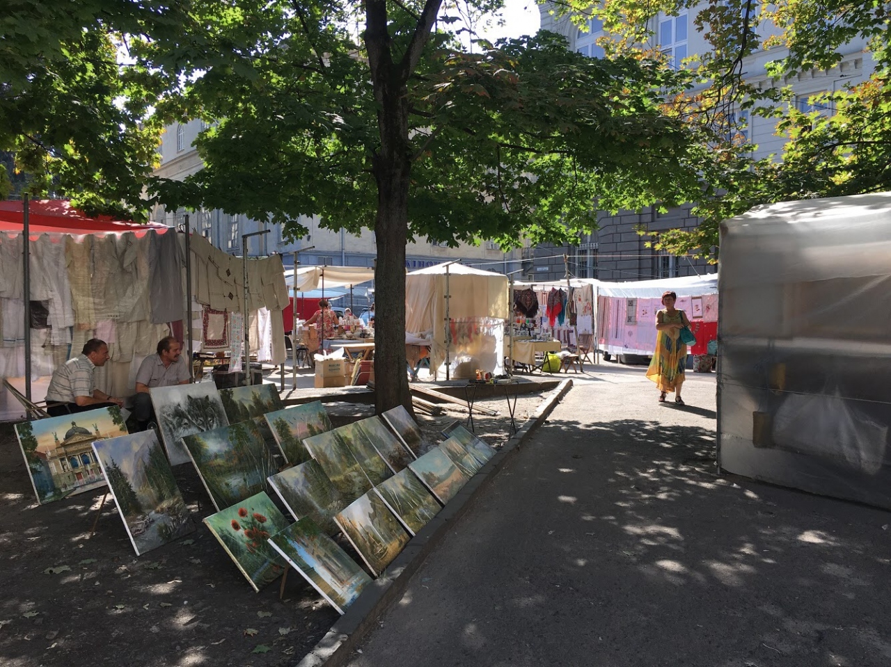 リヴィヴの旧市街地の北西、オペラ座のすぐ東側にウクライナの民芸品や土産物などを売る露店が立ち並ぶ一角があります。