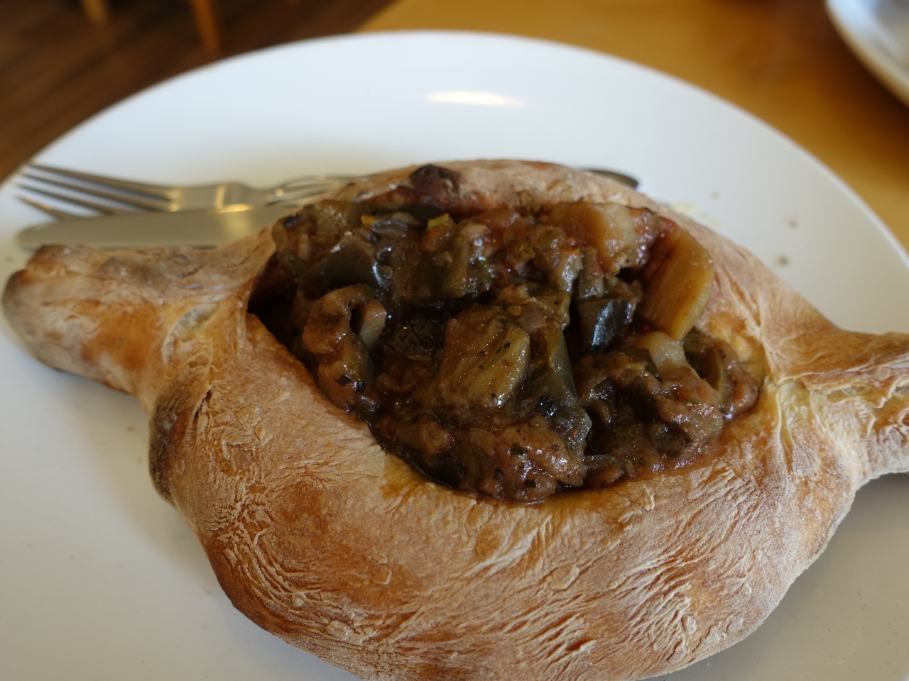 ハチャプリは、生地の部分が分厚く、ナイフを使っても切るのが大変で筋肉痛になりました。美味しいですが、「一度食べられたのでいいかな?」と、そんな感想です。