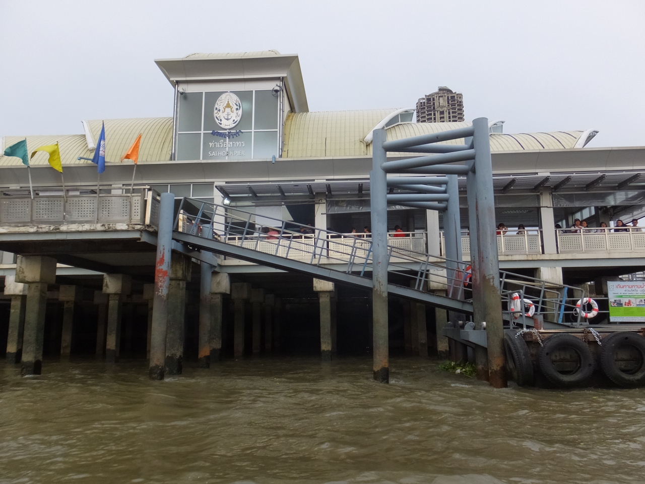 王宮方面の観光に行くのに渋滞を気にしなくてもいいので便利な、チャオプラヤーエクスプレスボートとの接続駅ですが、他のBTSの駅と同様に券売機では紙幣が使えないので要注意です。窓口はいつも行列でした。地上に降りてすぐの公園にトイレがあるのが、他のBTSの駅と違ってお勧めです。