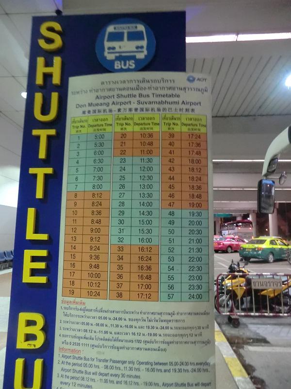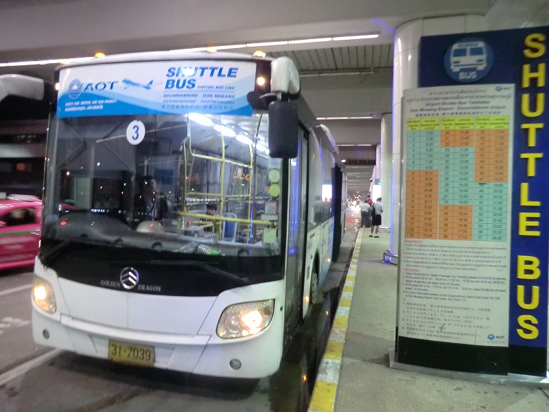 ドンムアン空港からスワンナプーム国際空港まで、無料のシャトルバスを利用しました。
