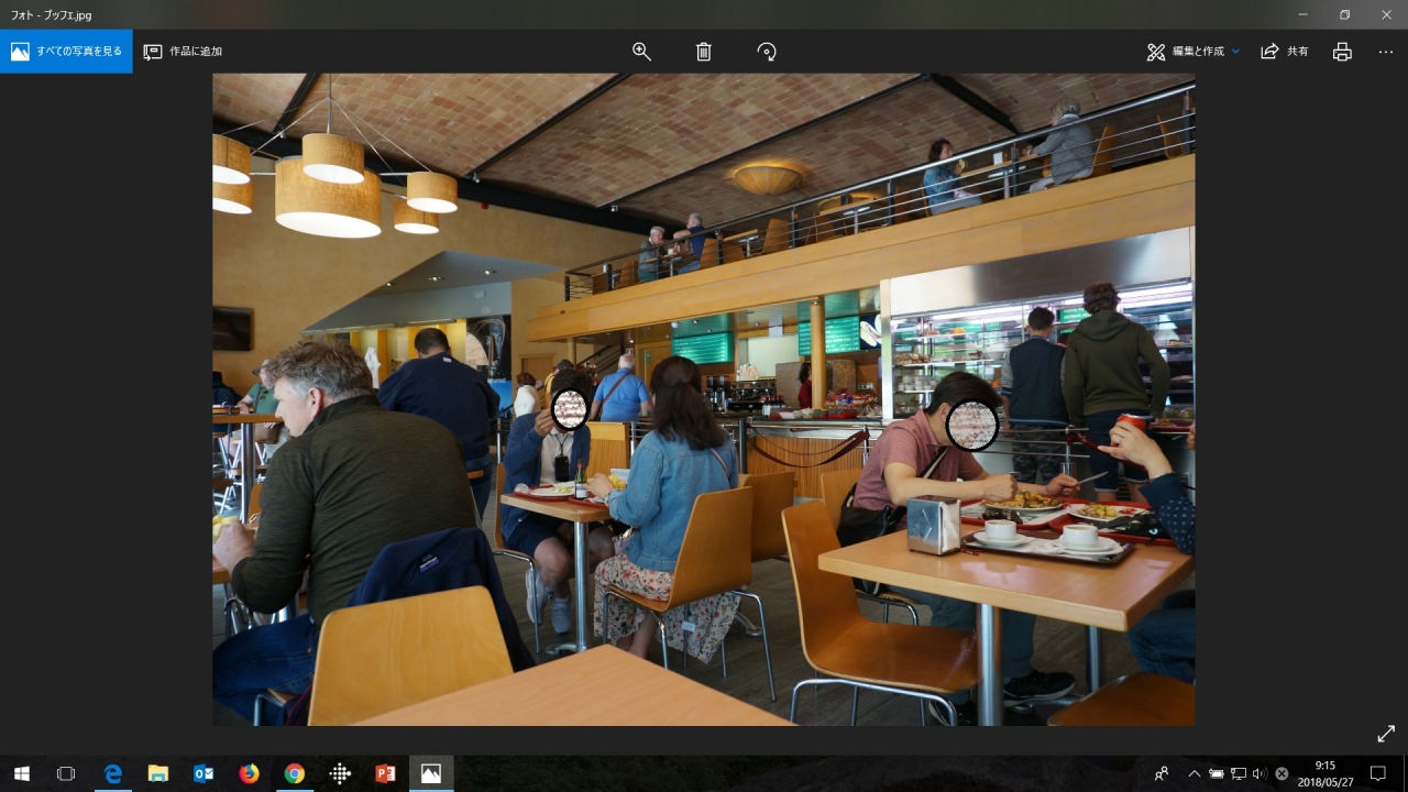 電車とビュッフェがセットにあったチケットの人もここで食べるようです。われわれは、たまたま入りました。カウンターが2つに分かれていて、どう違うのかよくわかりませんでしたが、温かい食べ物が並んでいるコーナーへ。店員にあれとこれと指差しで注文します。最後にレジでお金を支払い、空いている席へ。席は2階にもあるので座れてないということはないかと。