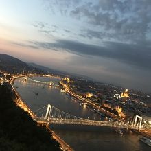 ゲッレールトの丘はバスでも行けるということでしたが、ホテルの横から登る道があったので、徒歩で登りました。途中でいくつか道が分かれるので、帰れるか不安になりましたが、なんとなくで帰れました。夕暮れの時間に間に合うように行きましたが、夜景を待っている人もいましたが、すぐに立ち去る方の方が多かったです。ここからの景色は、ペスト側の街を細かく見ることができて、あんなところにも教会があったんだと楽しかったです。夕景~夜景の移り変わりもきれいでした。完全に暗くなる前に降りましたが、歩いている人が少なかったので、確かに夜は一人だと不安になると思います。
