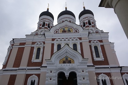丸い玉ねぎ頭が特徴の大聖堂です。見た目からも何となくわかるかと思いますが、この大聖堂はロシアの正教会になるんだそうです。大聖堂は昼間から人の出入りがけっこう頻繁にあるようで、それが夜まで続いていました。