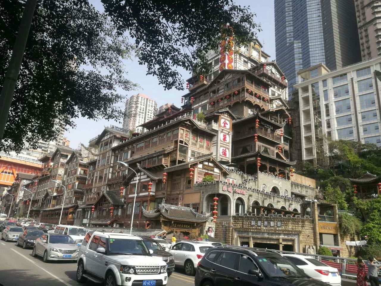 屋上にはスタバや中にはリバービューのカフェも多く入り、週末ともなれば重慶内外から観光客が。レストランや小規模な食べ歩き店、民族的なお土産、アートな自主作品の販売店など、これでもかといった見た目通りのごちゃ混ぜ感。夕方から夜にかけてのリバービューは秀逸。難点はエレベーターがキャパオーバーの場合、待ち時間が長く、待てない場合は階段を利用せざるを得ない。屋上側(裏)から夕方入る場合は入場規制の列に並ばないといけない。