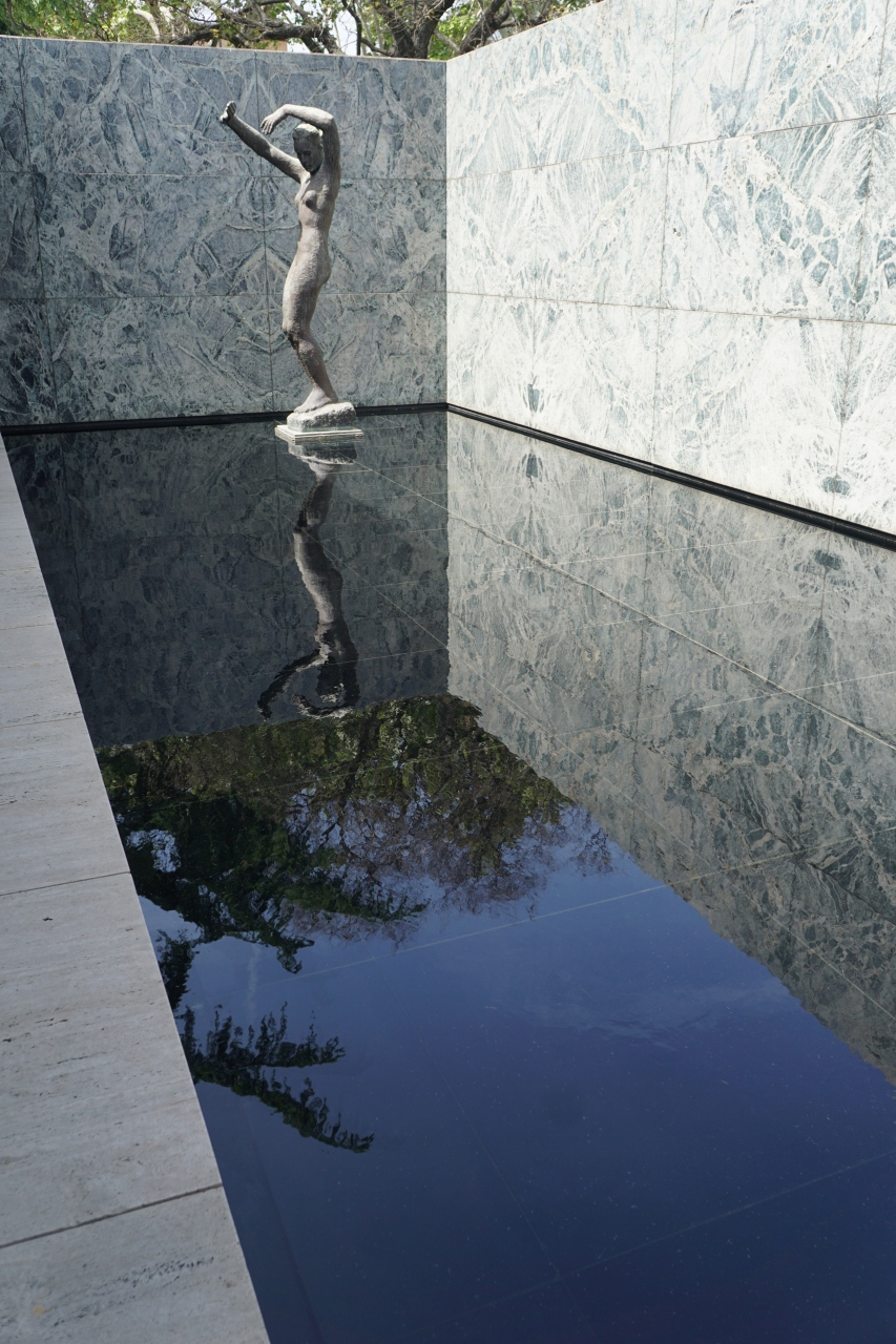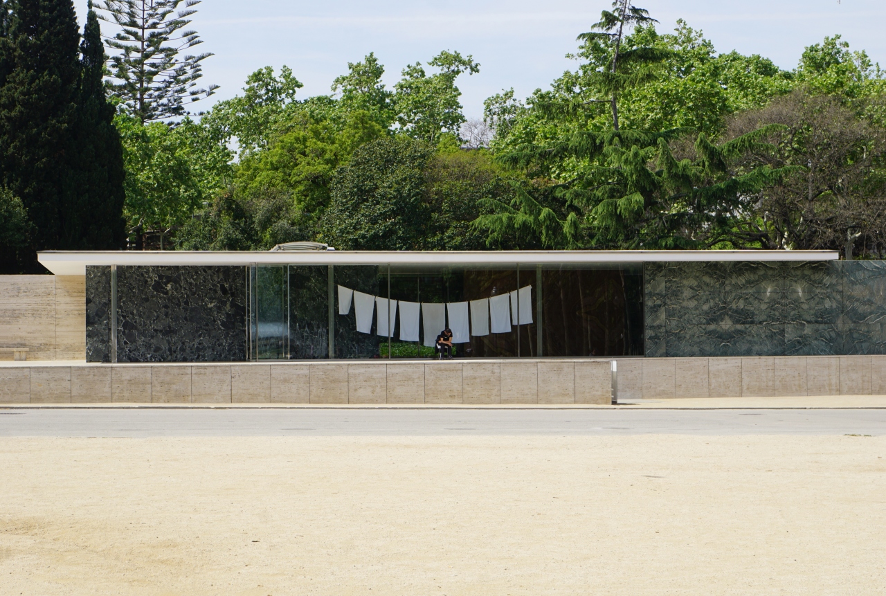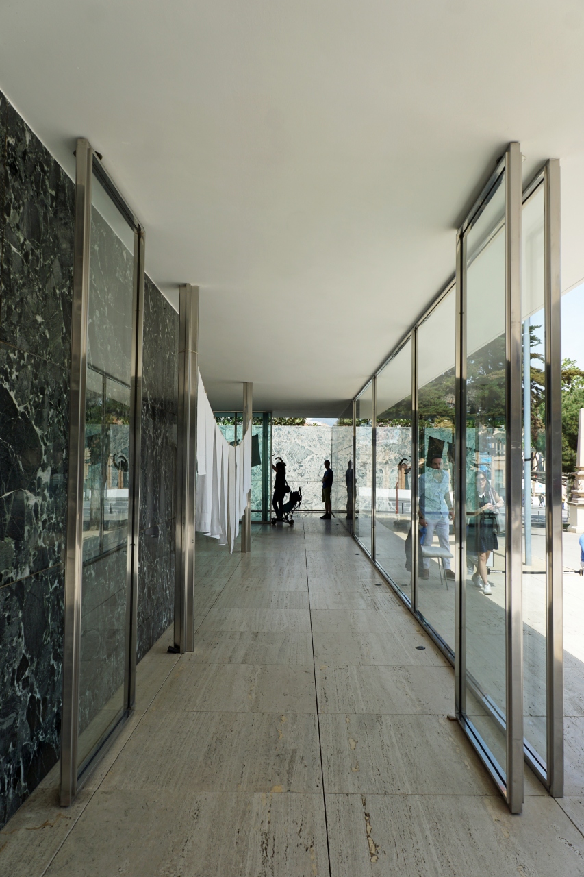 スペイン広場からカタルーニャ美術館へ登っていく途中の右側の広場の奥にあります。殺風景な土埃の広場の奥に記念館はあります。一度は撤去されたものを再現していますが、本でしか見たことが無かったこの建物を見ることが出来たのは感激です。建築に勉強をしたことがある人なら絶対に知っている建築家です。残念だったのはインスタレーションの展示が行われていて、バルセロナ・チェアーが置いてなかったことです。表からだけならタダで見ることが出来ますが、水平と垂直の構成やディティールやマテリアルを見るには中に入ることが必要だと思います。インスタレーションに使われていないことをお祈りします。