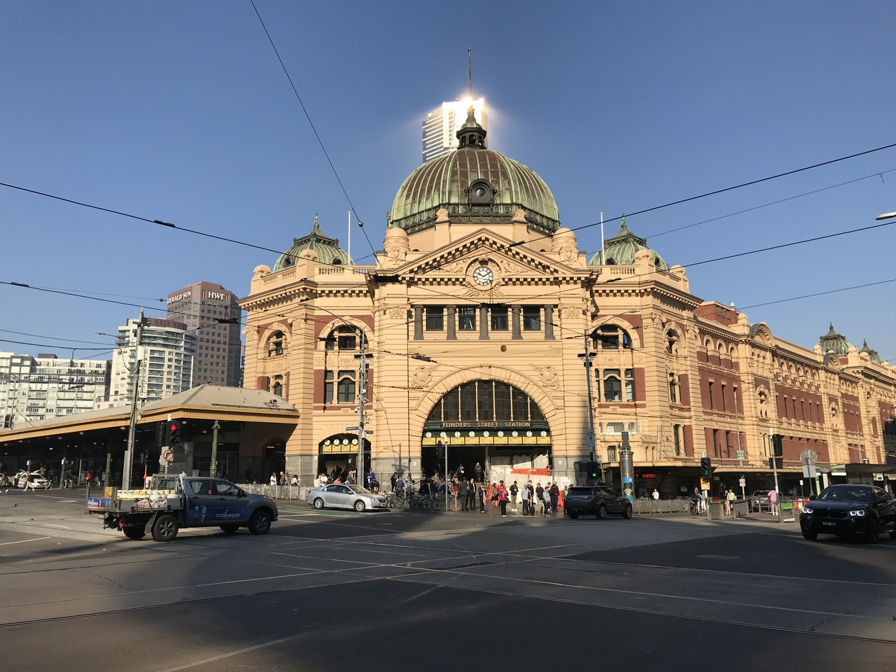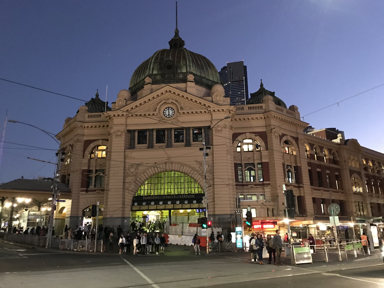 メルボルンはこの駅のように古い建物を生かした施設が至る所にあり、ヨーロッパのような街並みで素敵でした。夜のフリンダース駅も存在感がありました。