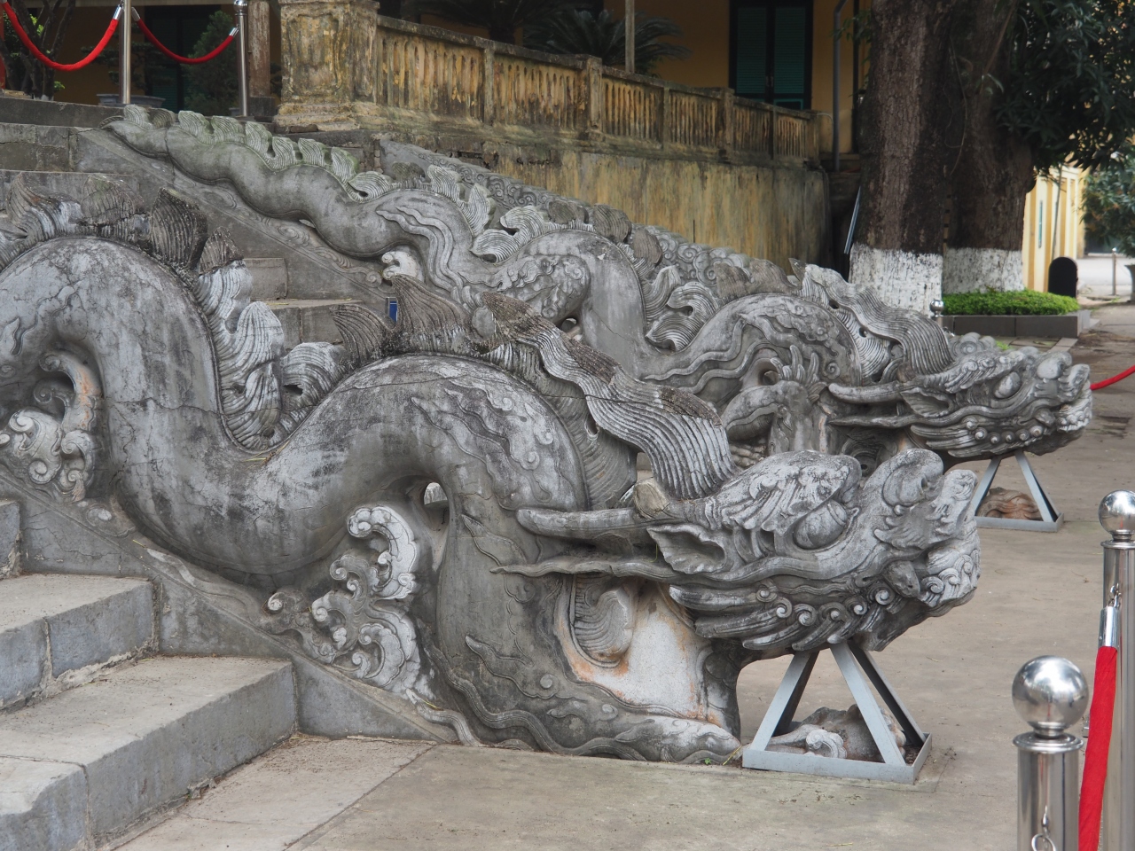 11世紀から19世紀初頭までは、タンロンが首都(旧ハノイ)で、ここタンロン城に歴代皇帝が居城していました。有名な楼閣が「端門」。石段を上がると広大なタンロン城の敷地を眺めることができます。奥には皇帝の玉座があったと思われる場所もあります。中が広いので相当に歩きますが、ベトナムの歴史を感じさせる建物です。