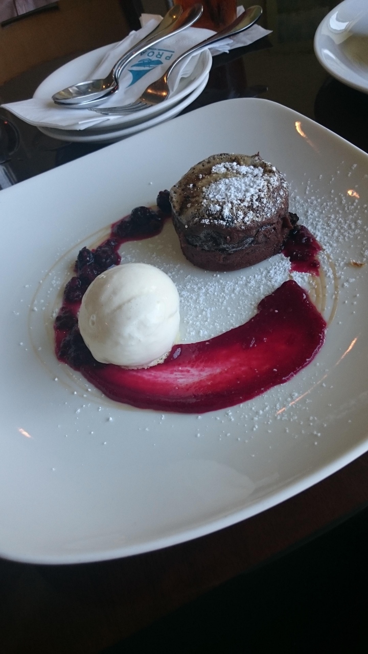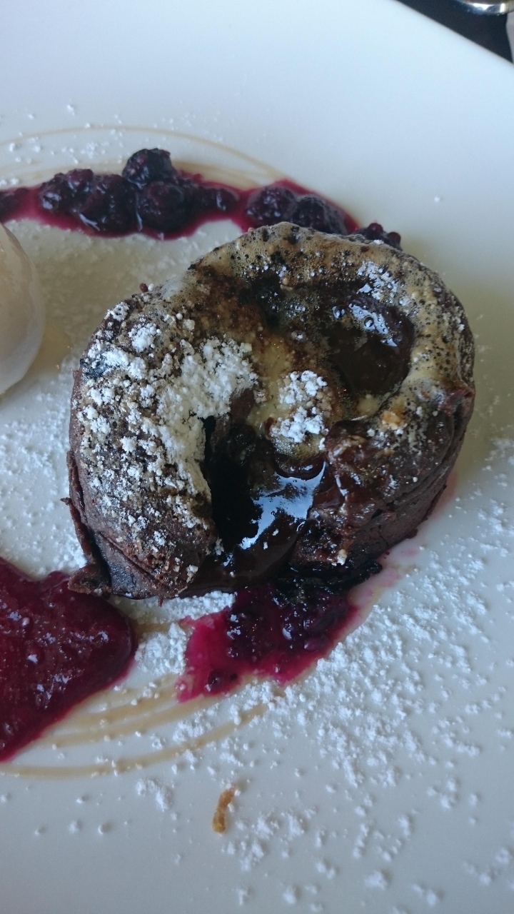 デザートもどう?って店員さんがおすすめ教えてくれてwarm molten chocolate cake(フォンダンショコラ)チョコがとろとろ美味しかったです