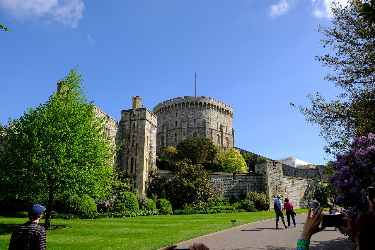 バスツアーでいってきましたが2時間ほどの滞在時間ではじっくり回ることは出来ませんでした。じっくり見たい人はバスツアーではなく個別手配がいいかも。ウンザー城で観光できるのは3箇所。ステートアパートメントとQueen Marry'sドールハウス、St.George's Chapelです。残念ながら内部は全て撮影不可です。X線検査後の向かいの部屋でオーディオガイドが借りれます。オーディオガイド無料。オーディオガイドは各国語対応で日本語もよく出来ていました。入ってすぐにラウンドタワーが見えてきます。普段はイギリス国旗が掲げられていますが、エリザベス女王が滞在中は女王旗が掲げられるそうです。Queen Marry'sドールハウスは人気で100人ぐらいの列が出来ています。時間の関係でQueen Marry'sドールハウスは見送りました。ステートアパートメントは豪華でロイヤルコレクションが多く飾られています。1992年に火災が発生して多くの部屋が焼失したそうですがすっかり綺麗に修復されています。火元の部屋にある巨大な緑色の壷は表面がモザイク状に剥がれ落ちたのをジグソーパズルのように修復したようです。確かに表面に細かいヒビがあります。St.George's Chapelはイングランドでは初期のゴッシック建築の教会だそうです。規模は違いますがパリのノートルダム寺院に装飾が似ています。