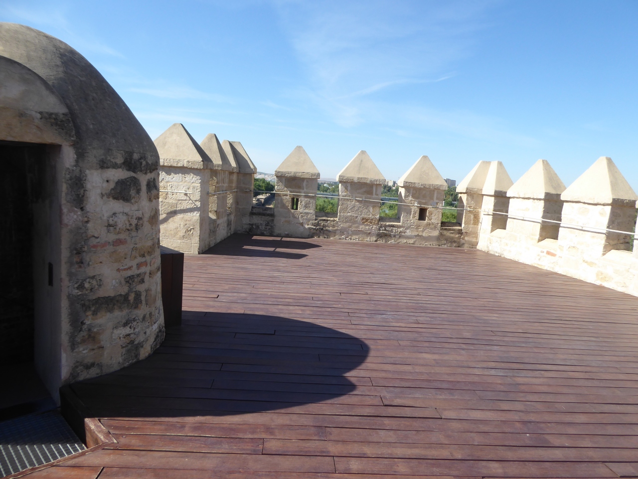 メスキータ南にあるローマ橋を渡った先に、大きな石造りの塔があります。カラオーラの塔で、12世紀にローマ橋を守るためにイスラム時代に創られた砦です。塔の上に昇ると、砦であったことが良く分かります。下からの攻撃に備えた防護壁があり、防護壁の隙間を使って塔の上部から攻撃できるようになっていました。