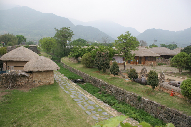 実際に生活する人が居住する、朝鮮時代の城と家々が現存する民族村