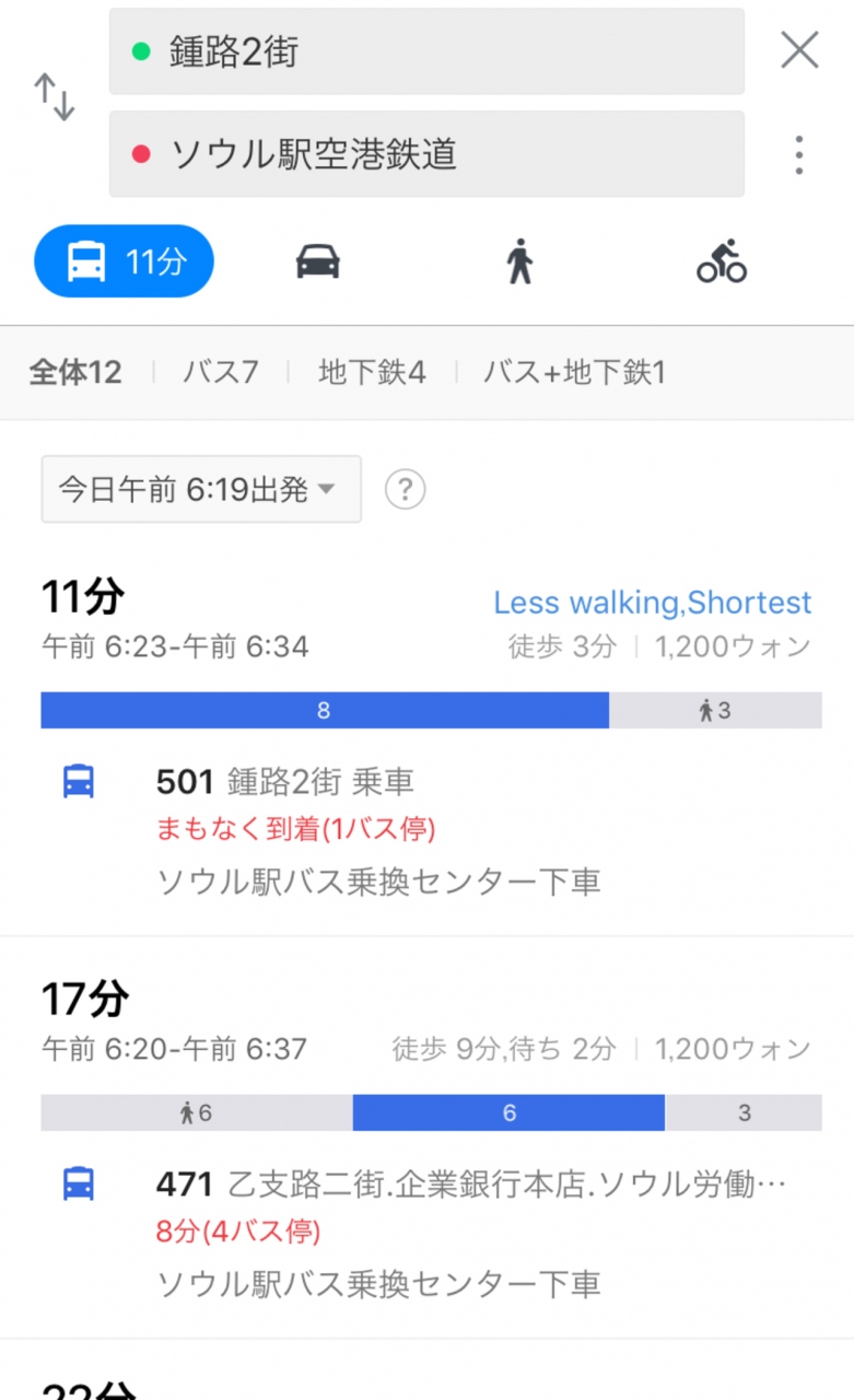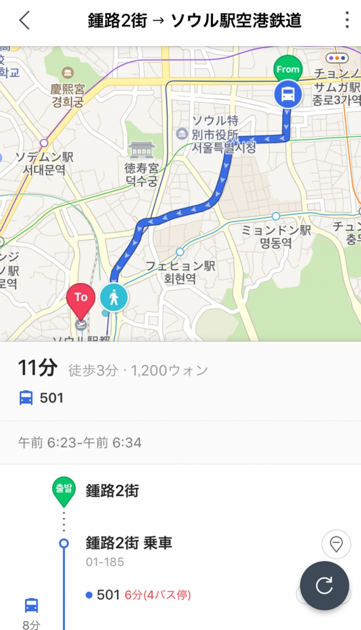 しかし今回は「NAVER MAP」というアプリをダウンロードして、バスの乗り場やルートを検索してバスにもチャレンジしました。