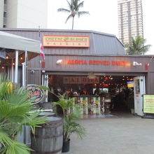 ワイキキのアラモアナよりの交差点にあるハッピーアワーからお客さんで賑わうジューシーなチーズバーガーが評判の店で、自家製ビールが楽しめるビアガーデンを併設しています。