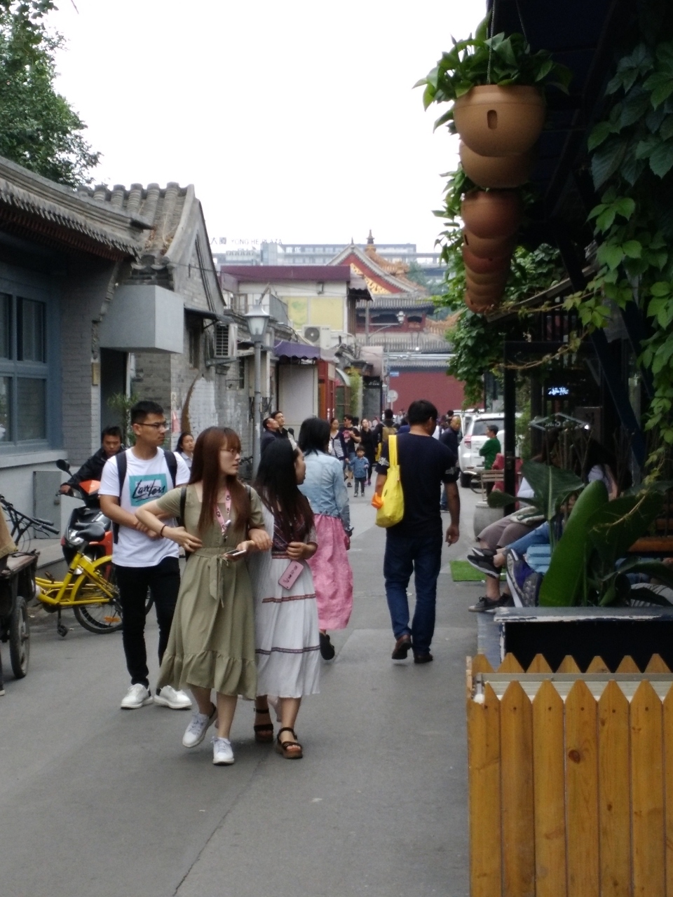南羅鼓巷よりも静かで落ち着いた雰囲気でした。ちゃんとしたコーヒーも飲めそうなお店も多々あり、二階にも席があるお店も数店舗見かけました。結婚式の写真を撮影しているカップルも居て微笑ましかったです。胡同の東側からは雍和宮を望めます。