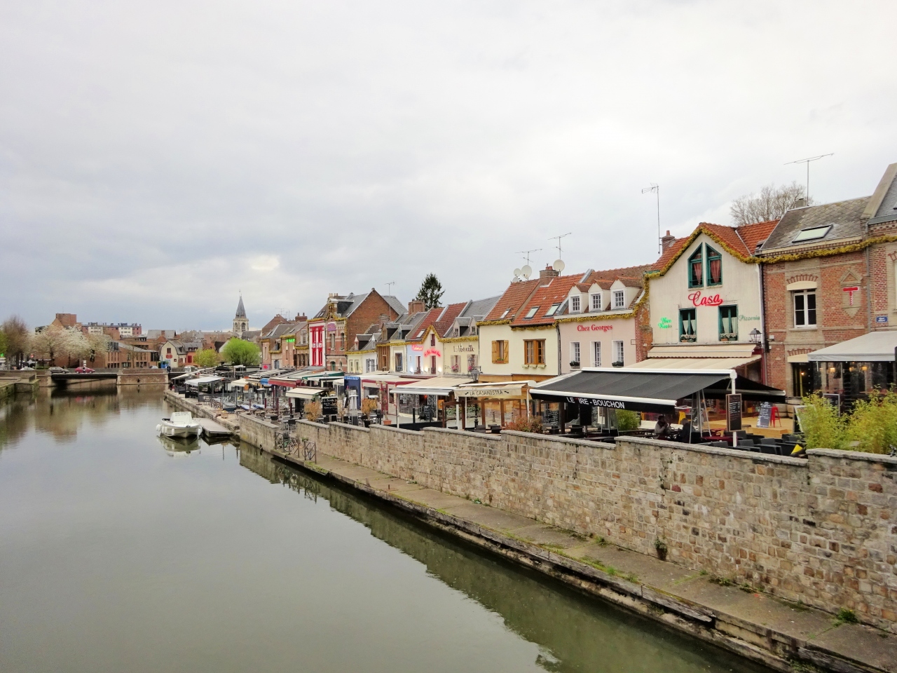 ノートルダム大聖堂の北側からソンム川(運河)にかけての一帯がサン・ルー地区。カラフルな家々が建ち並び、運河沿いにはカフェやレストランが軒を連ねています。