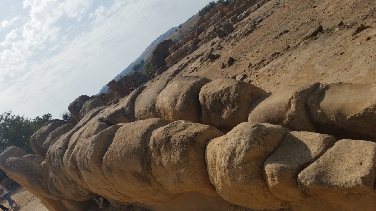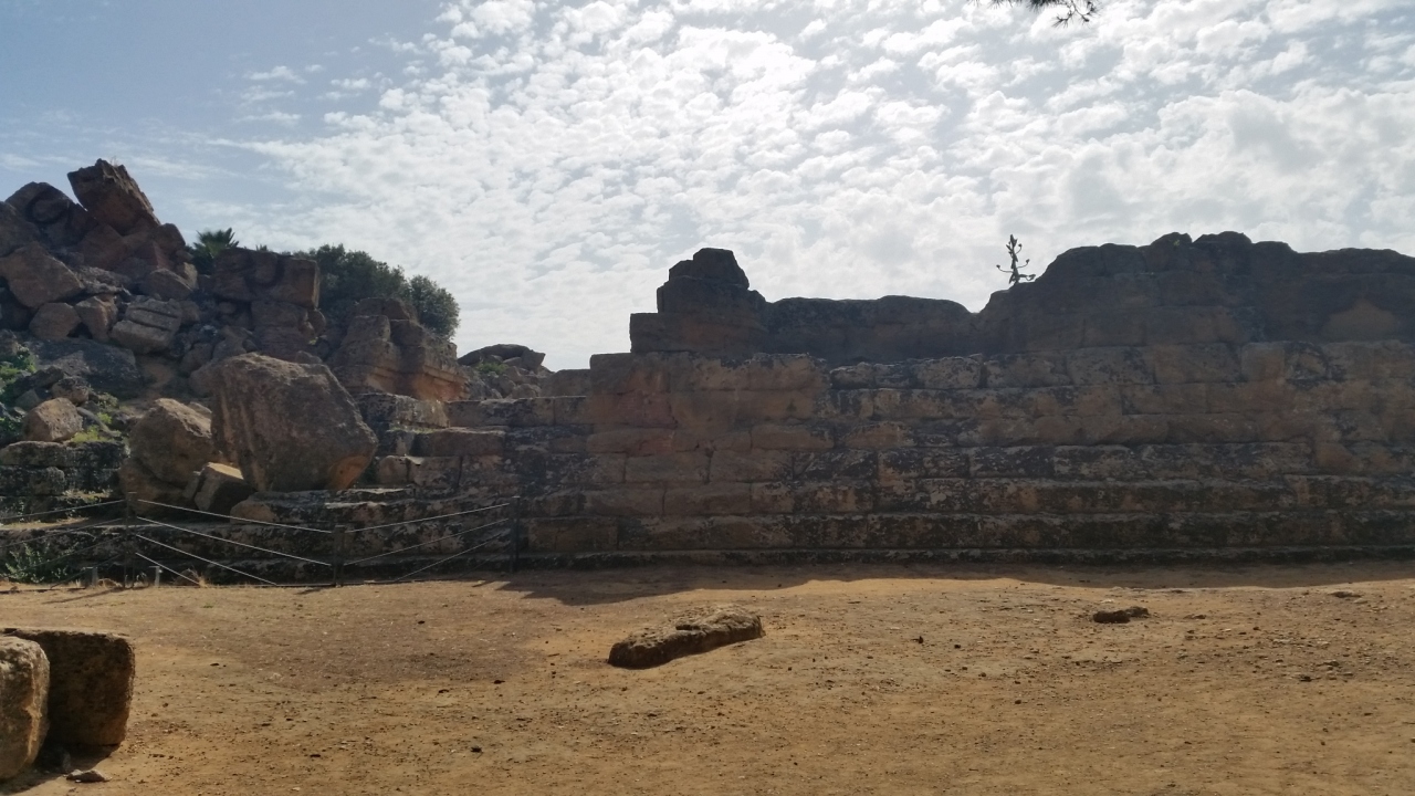 BC480年頃建立されました。基階112m×56m ギリシア建築最大級の遺跡です。ヒメラの戦いの勝利を記念して建立されましたが、カルタゴ軍によって破壊され廃墟となりました。入口を飾っていた巨人テラモンのコピーは今は寝ています。