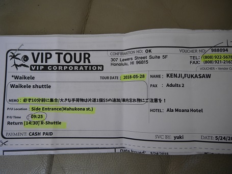 ハワイに来ると必ず寄るのがワイケレプレミアムアウトレットです。一番安く行くにはザ・バス(5.5ドル)ですが乗り換えなどで2時間くらい掛かりますので、私は毎回VIPツアーを利用します。一人10ドルで帰りの便も選べるので便利です。
