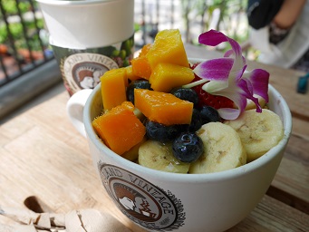 アラモアナホテルのチェックイン後ワイキキに出てまずはランチタイム、何時ものようにアサイボールを食べました。これを食べないと始まらないような気さえする、そんな思いにさせてくれる味で何度食べても飽きない。昨年はアイスカフェラテを待つ間に溶けてしまったので、今回はコナ100%コーヒーにしました。