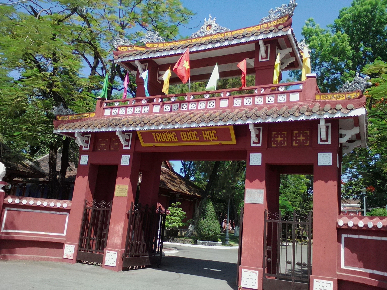 ベトナム建国の父でもあるホーチミンがかつて学んだ学校。現在も高校として使われているので授業中は中には入れないと思います。私の訪れた時は夏休み中でしたが入口で守衛に呼び止められました。写真を撮るだけと告げ何回かのやり取り後になんとか許可してもらえました。校庭は緑あふれ、校舎も赤レンガ風の建物で格式の高さが感じられます。勉学に励むには申し分ない環境だと思います。正面の校舎前には何やら銅像が…。名前を見ると「Nguyen Tat Thanh」と。実はこれ、若かりし日のホーチミンです。クオックホックを訪れた際にはこの像は必見です。