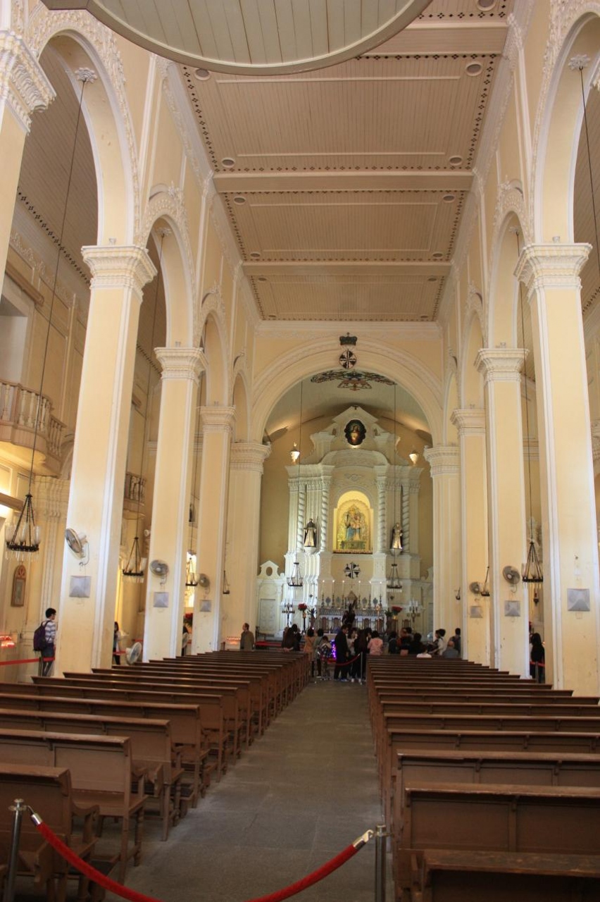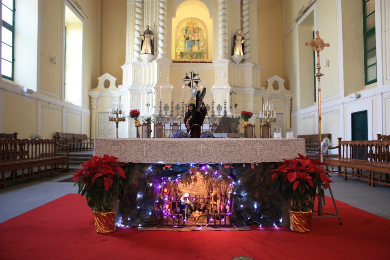 年末に訪問した為か、祭壇の下がキリストの誕生のオブジェが展示されていました。内部はひんやりしていて快適な空間が広がっていました。外観はクリーム色の三階建ての作りですが、内部は1、2階が吹き抜け構造のようです。