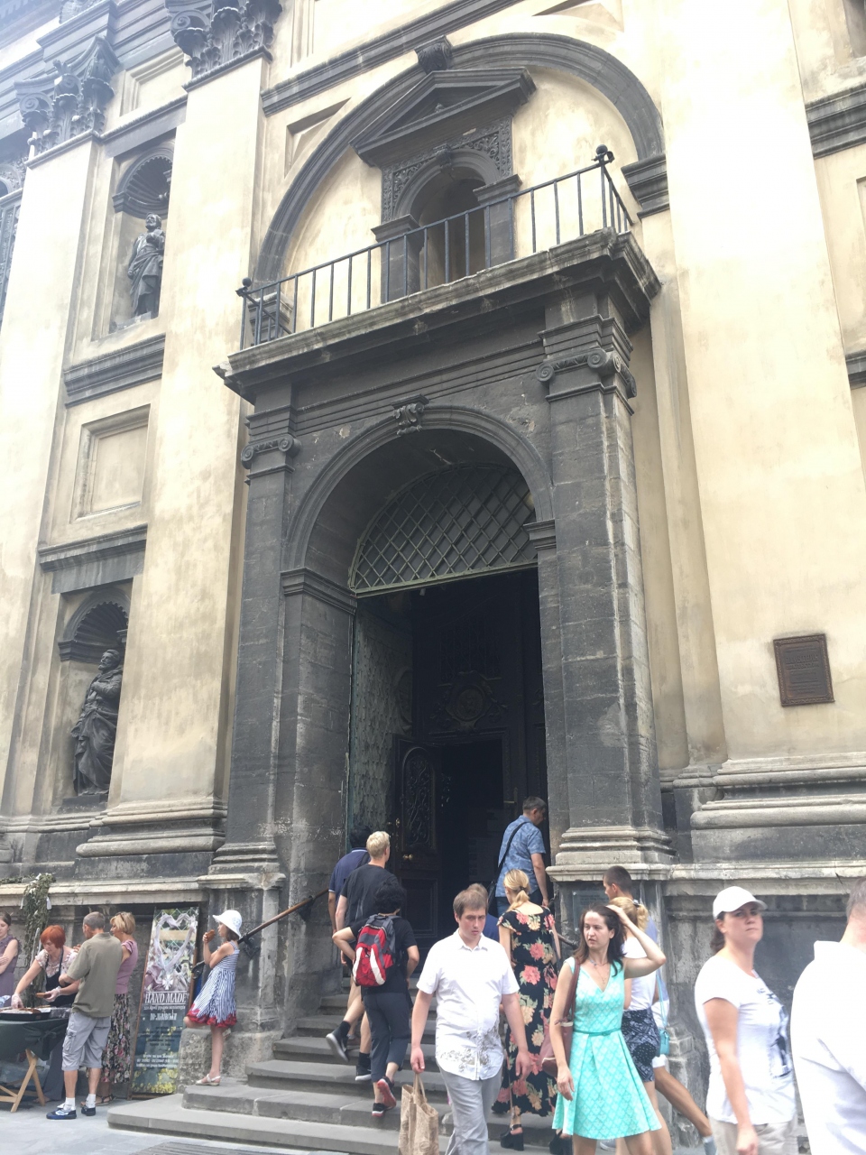 リヴィヴ旧市街地、リノック広場の西にあるイエズス会の教会。正式名称は聖ペトロ&パウロガリソン教会(Saints Peter and Paul Garrison Church)。