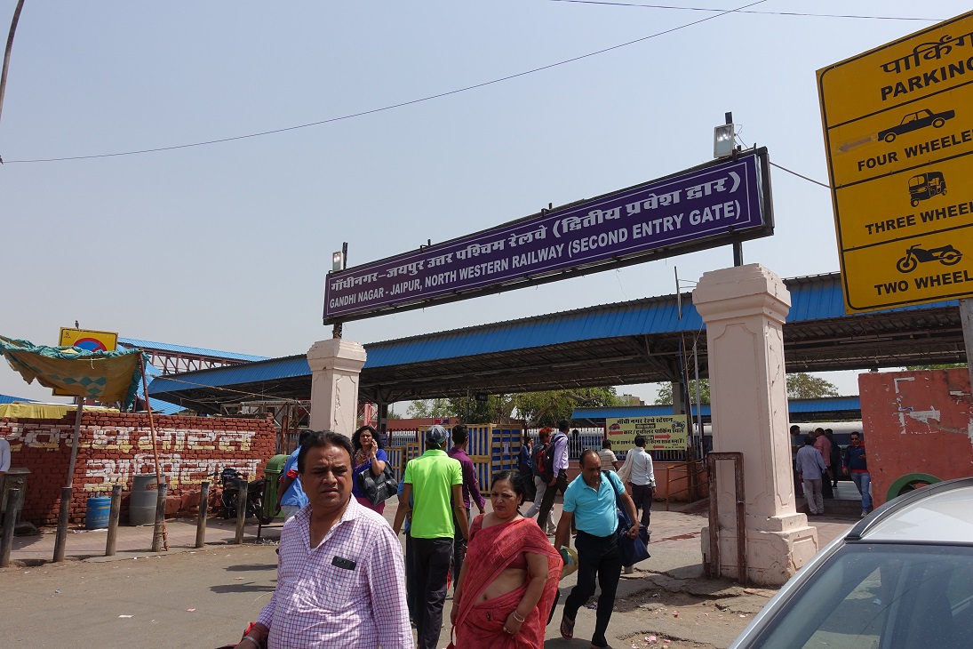 デリーからジャイプールまでは300キロほど。車よりも列車での移動の方がだいぶ楽です。ジャイプールの駅から街中の観光名所までは車で10分ほどの距離ですが、駅前にはタクシーやリクシャーが、駅から流れてくる人を待っています。