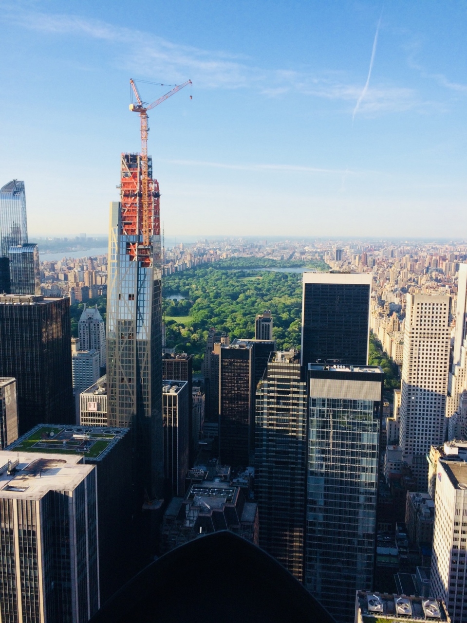 混んでいることを想定して、事前にホームページから予約して行きました。入口は、ラジオシティの向かいを目印にすると分かりやすいと思います。予約のおかげか、手荷物検査をし、待ち時間もほとんどなく上がれました。18:30頃ですが、まだまだ明るかったです。エンパイアステートビル方面に写真を撮る人が集中しています。小さく自由の女神も見えました。