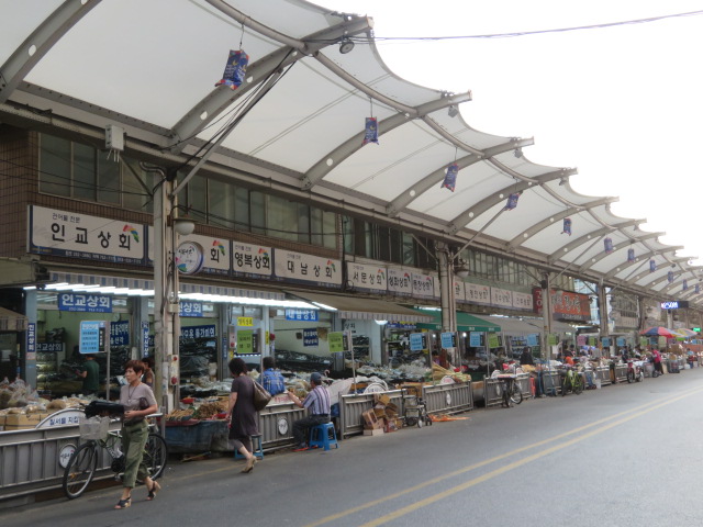 大邱を代表する市場で地下鉄3号線西門市場駅前にあります、お店は大きな建物内、アーケード街や狭い路地にあります、衣料品・雑貨などファッション関連品を扱うお店、生鮮食品やお菓子など扱う食料品店に飲食店が多くありました、日本では見たことがないような商品が並んでいます、眺めながらの散策、楽しめました、韓国グルメを楽しむのいいようです。