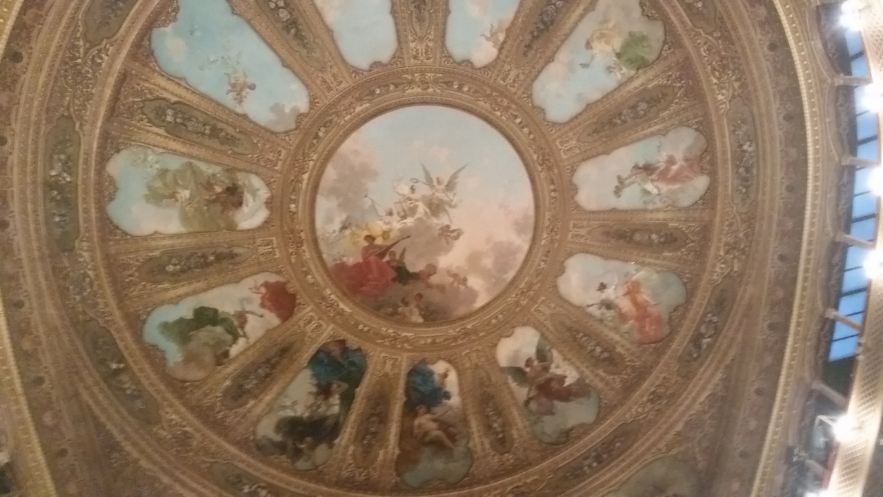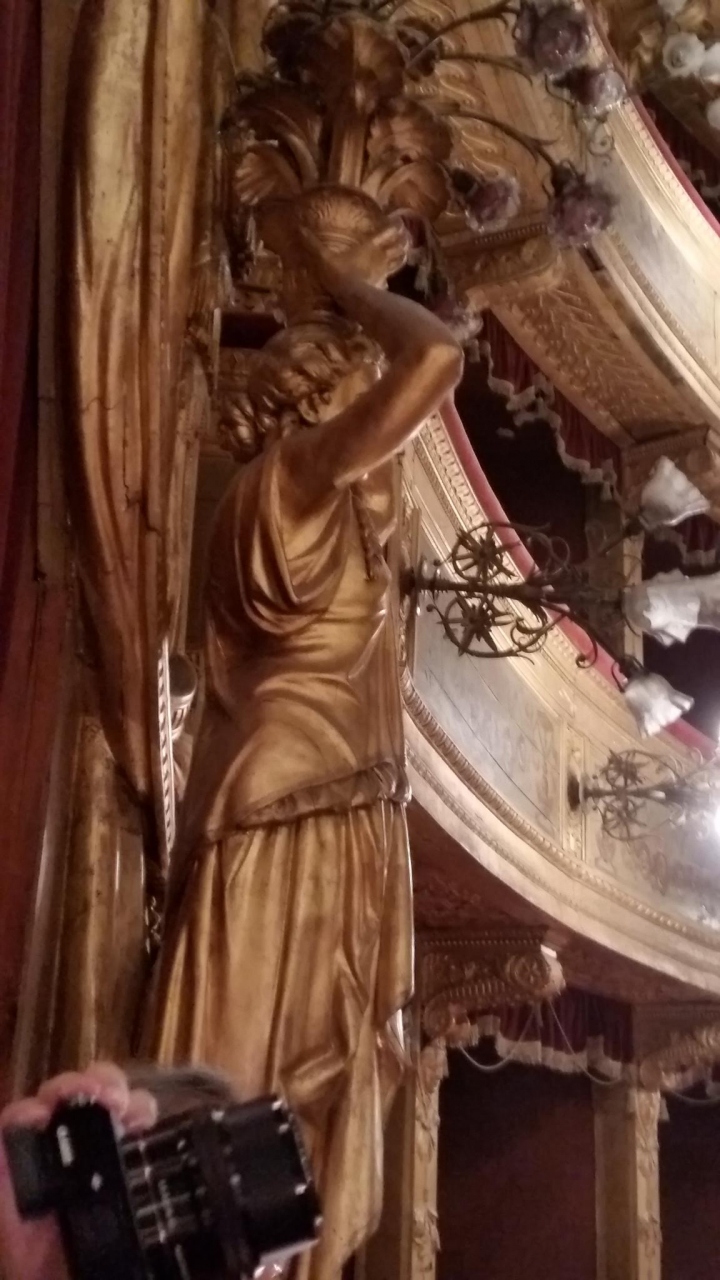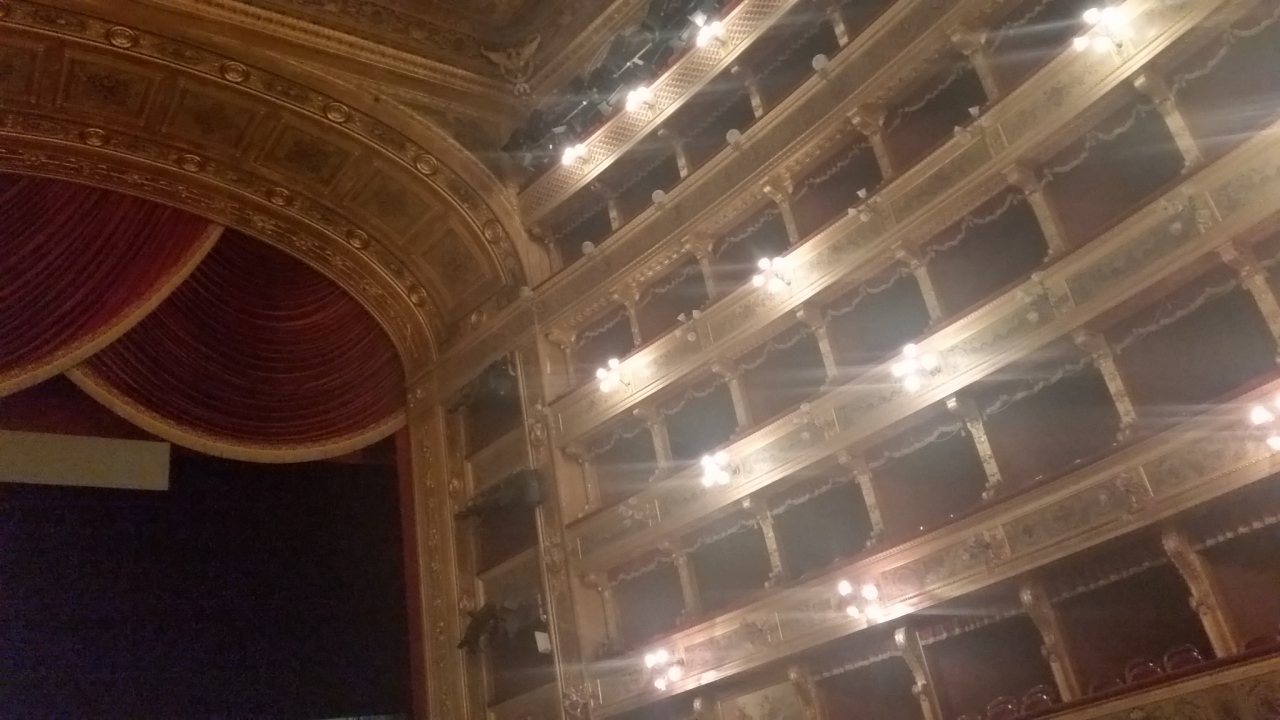 ツアーで訪問し、内部見学ツアーに参加しました。英語での説明を現地ガイドにさらに日本語訳してもらいました。正面玄関ホールから、客席へ。座って観客の気分に。そしてロイヤルボックスへ。見下ろし、座り、ちょっぴり貴族の気分に。それからポンペイの間へ。一声発し、声の響き具合を確かめました。大変よく響きました。楽しかったです。