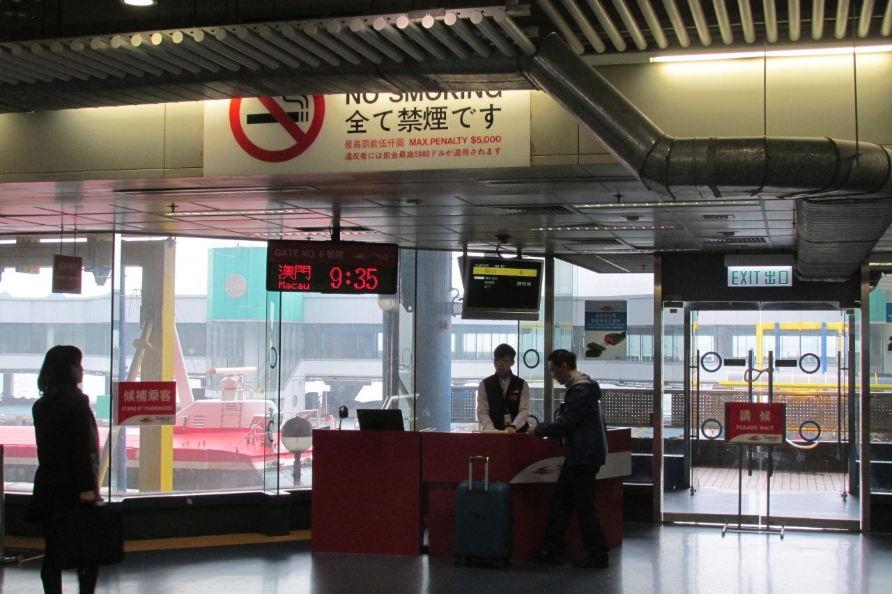 香港島上環から澳門外港まで往復利用しました。チケットを購入の際は、チケット売り場の窓口上方にフェリーの行き先、時間が書いてあるのですぐに分かると思います。混雑している時期では、思うような時間のフェリーが取れないかもしれないので予約をした方がいいかもしれません。特に、帰りのチケットを買っていなかったので、2時間くらい待つ羽目になりました。座席指定です。そんなには揺れないので船酔いも心配しすぎることはないと思います。