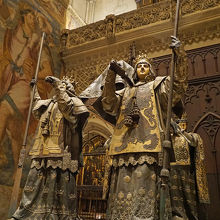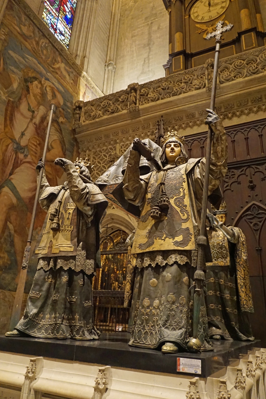アルカサルの見学の後にカテドラルの見学に移りましたが、入り口から角を曲がった先まで100メートルくらいの列になっていました。アルカサルでは3時間以上並んだので列を見た瞬間は気絶しそうでした。コルドバへ行く時間もあるのですが並ぶしかありません。ここまで来てコロンブスのお墓を妻に見せないでなんて考えられません。列は意外に早く短くなり、30分くらいで中に入ることが出来ました。単純にチケットとセキュリティのための列だったようです。その分中はすごい混雑で落ち着いて見学は出来ませんでした。見学にはそれぞれ2時間近くかかるので余裕を持ったスケジュールが必要だと思います。どちらもセビリアに来たら必須の観光ポイントです。