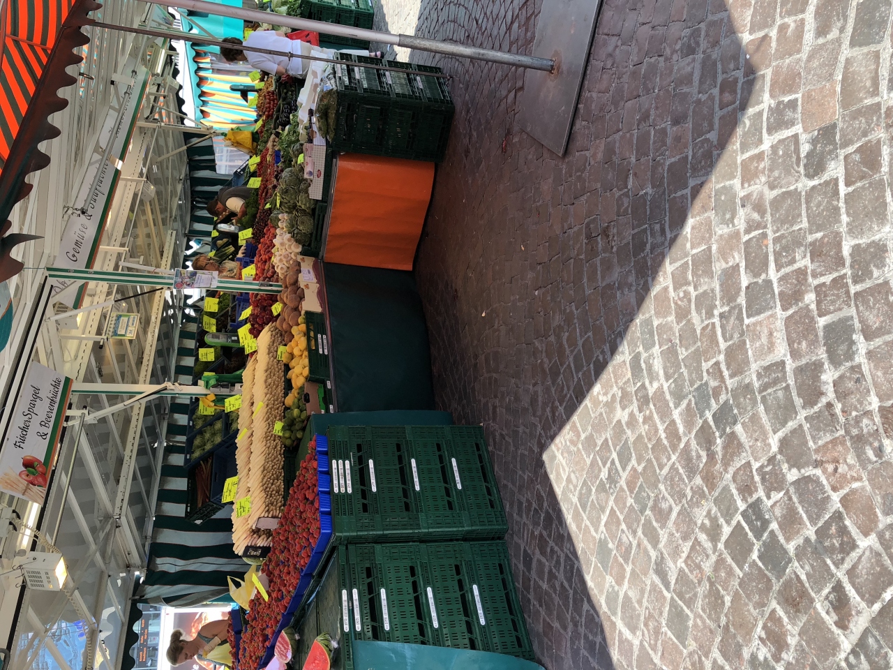 月曜日から土曜日まで市場が18時まで出ています。土曜日はもう少し早く閉まっていたと思いますが、ボンの市場はスーパーより安いのに新鮮で好きです。この時期は白アスパラが出て来て美味しいです。野菜果物以外にも、チーズや他のお店もあります。