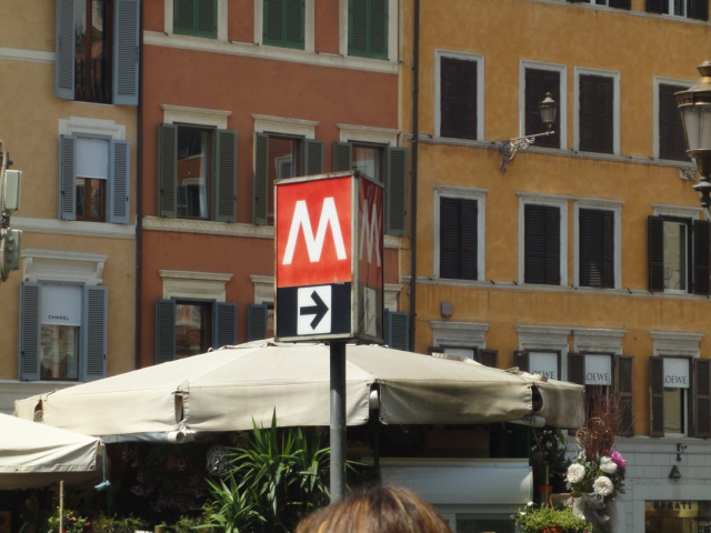スペイン広場の近くで、観光にも、とても便利なローマのスパーニャ駅です。スペイン広場の、ど真ん中(?)あたりに堂々とメトロのMマークがあって、分かりやすいです。駅自体は、けっこう広くて、スペイン広場と逆の出口に出たら、ここはどこ?みたいな場所に出てしまうこともあるので、間違う可能性は低いですが、ご注意ください。