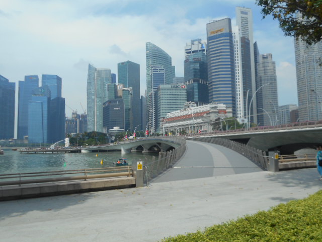 エスプラネードやサッカー球技場、橋を渡ってサンズ・ホテルにも繋がる遊歩道で、日中よりは涼しくなる夕方から夜には、多くの観光客やシンガポーリアンが夕涼みながら食事に来るエリアで、マーライオン公園も望めるストリートです。シンガポールでお気に入りの場所です。