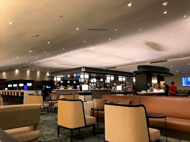 今までに経験した中で、最高レベルのラウンジでした。スペースが広く、どこにでもゆったりと座れました。注文をして作ってもらえる麺コーナーや、ワッフル。その他の食べ物も、作り立てをすぐに食べられるようになっていました。イスラム圏らしく、アルコールがあるバースペースは、区切られていました。