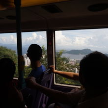 香港らしく、2階建ての大柄なバス。クネクネした山道を高速で駆け降り、乗り物酔いしやすい人は、1階に乗った方がいいかもしれません。景色は右に左に展開して、ピークトラムとはまったく違う眺め。ビクトリアピーク(太平山)の、高級住宅街としての側面も垣間見れました。