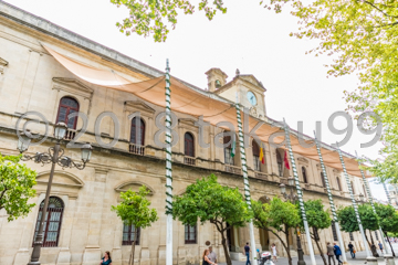 ヌエバ広場に面して建つ歴史的建造物です。ファサードが面してヌエバ広場の木が生えているので、距離が取れず正面の写真が撮りずらいです。ヨーロッパの古い市庁舎としては、エクステリアは極めてシンプルなデザインです。