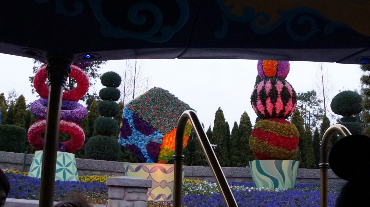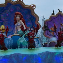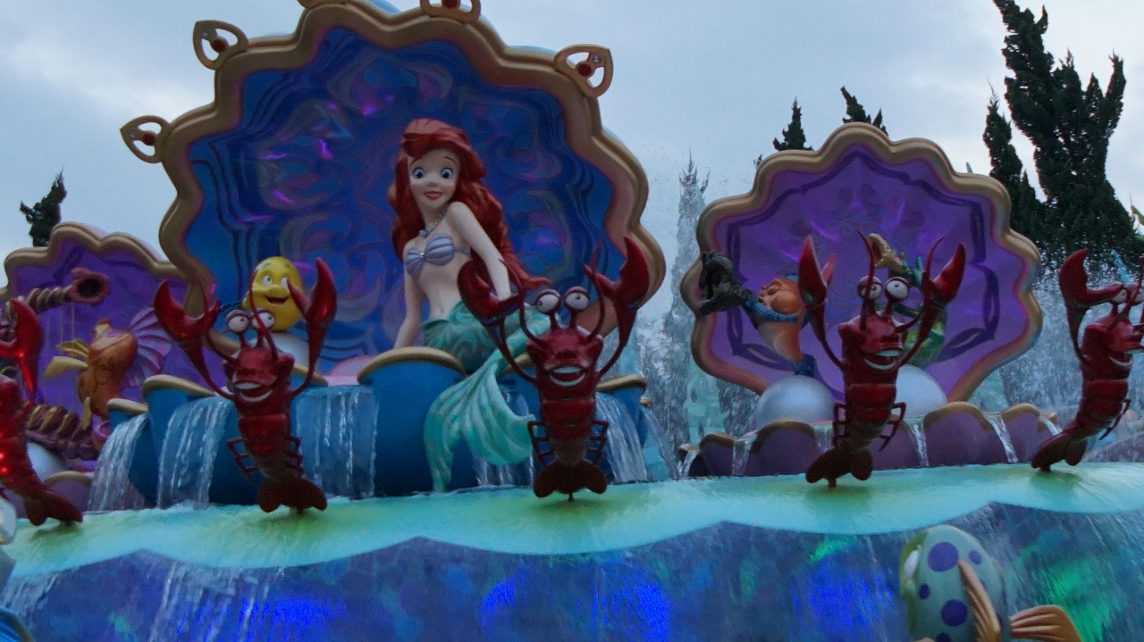 アラジンやアリエルやムーランなど様々なディズニーキャラクターの世界をボートに乗って旅をします。