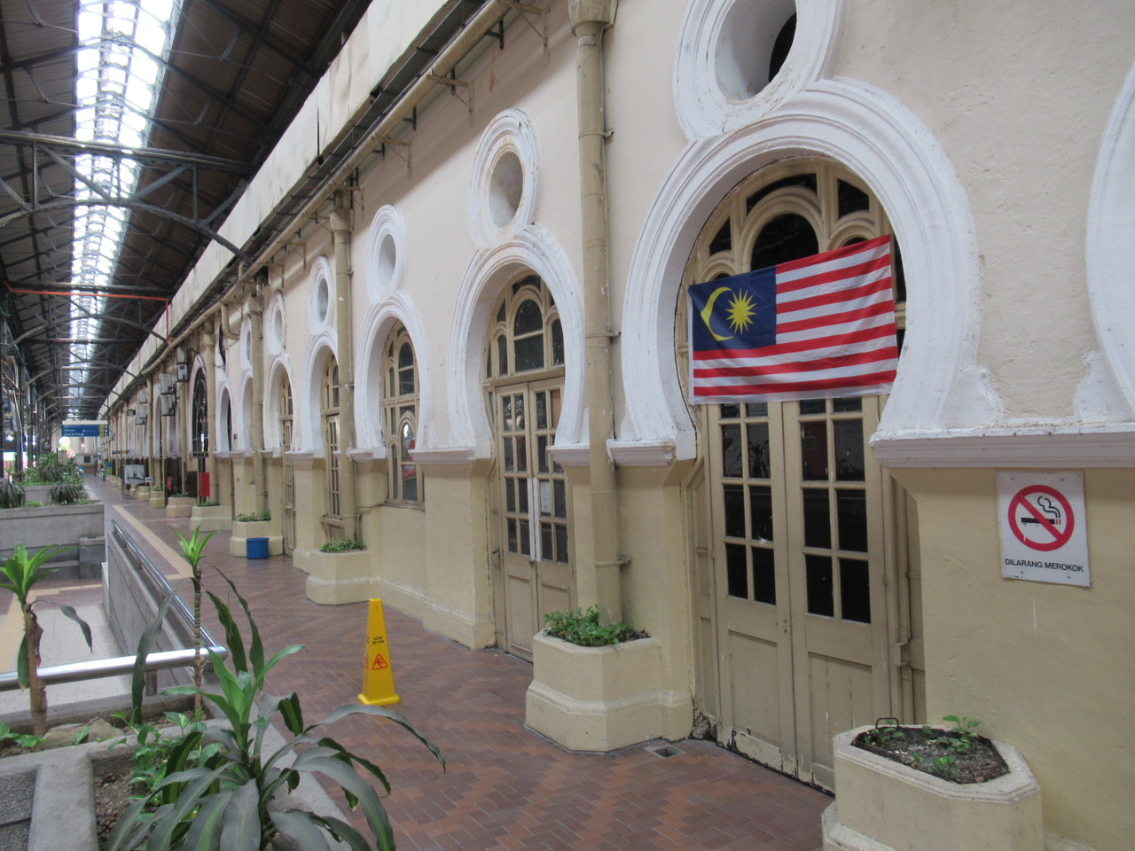 パサールスニ駅からチャイナタウンの反対側、川を高架歩道で渡って少し歩いた先にある古い建物です。国立モスクに行く途中に通りかかりました、見た目人気のない、使われていないような感じでしたが、建物内には自動改札機もあり、KLセントラル駅から一駅なので、後日乗ってみました。駅構内も同じように古くてどっしりとして重厚な作り、残念なのは工事中で全てのプラットホームが見渡せないことと、1時間に1本位しか電車の便がないので、時間に余裕があればってところです。