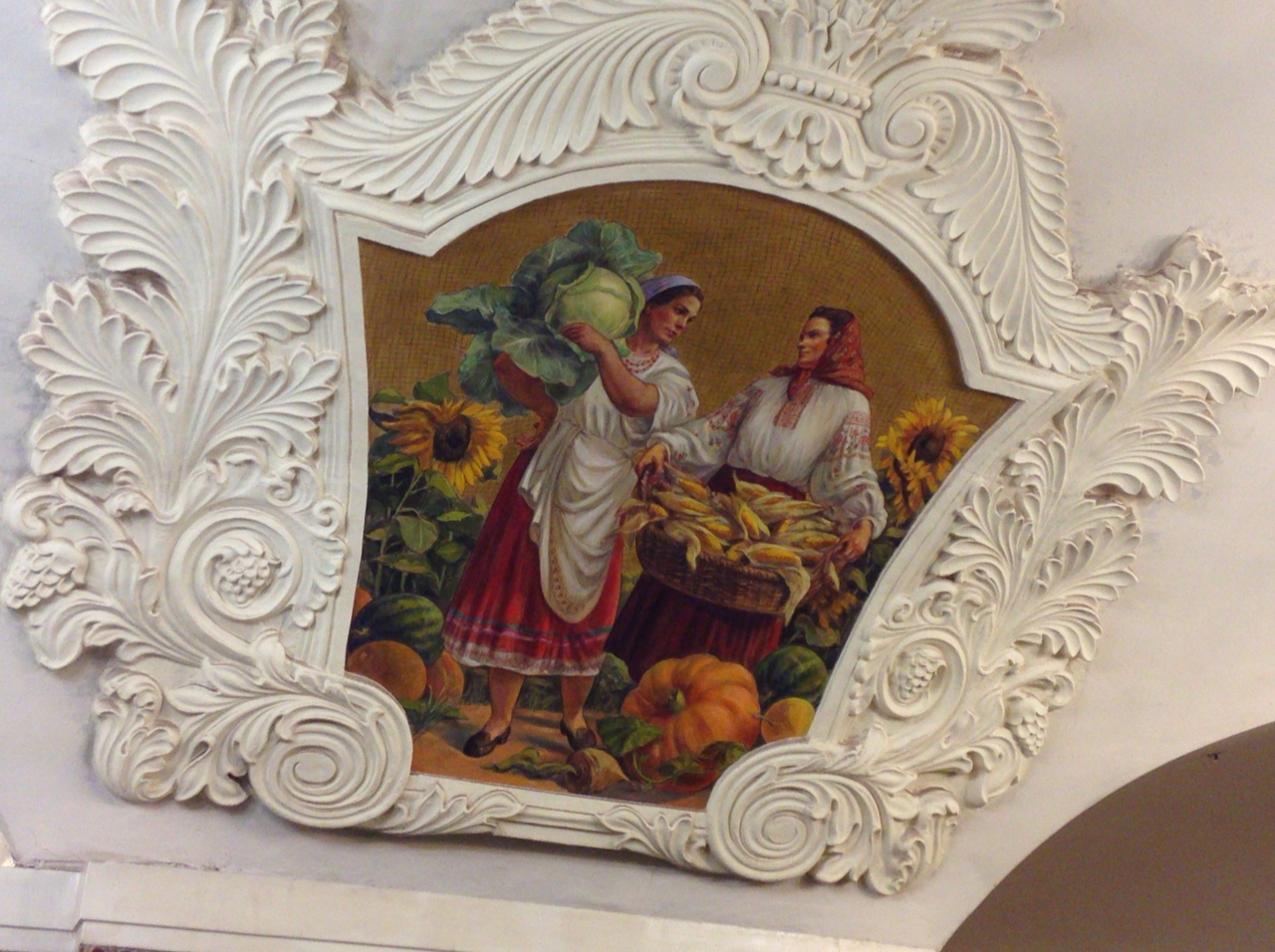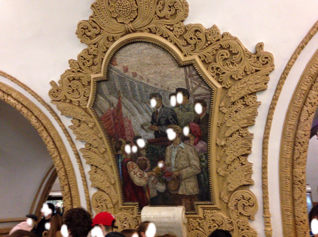ホーム中央のメイン通りにはレーニン万歳、農場や収穫の様子の絵画が駅構内の装飾として飾られている。これがなかなか良い感じ。