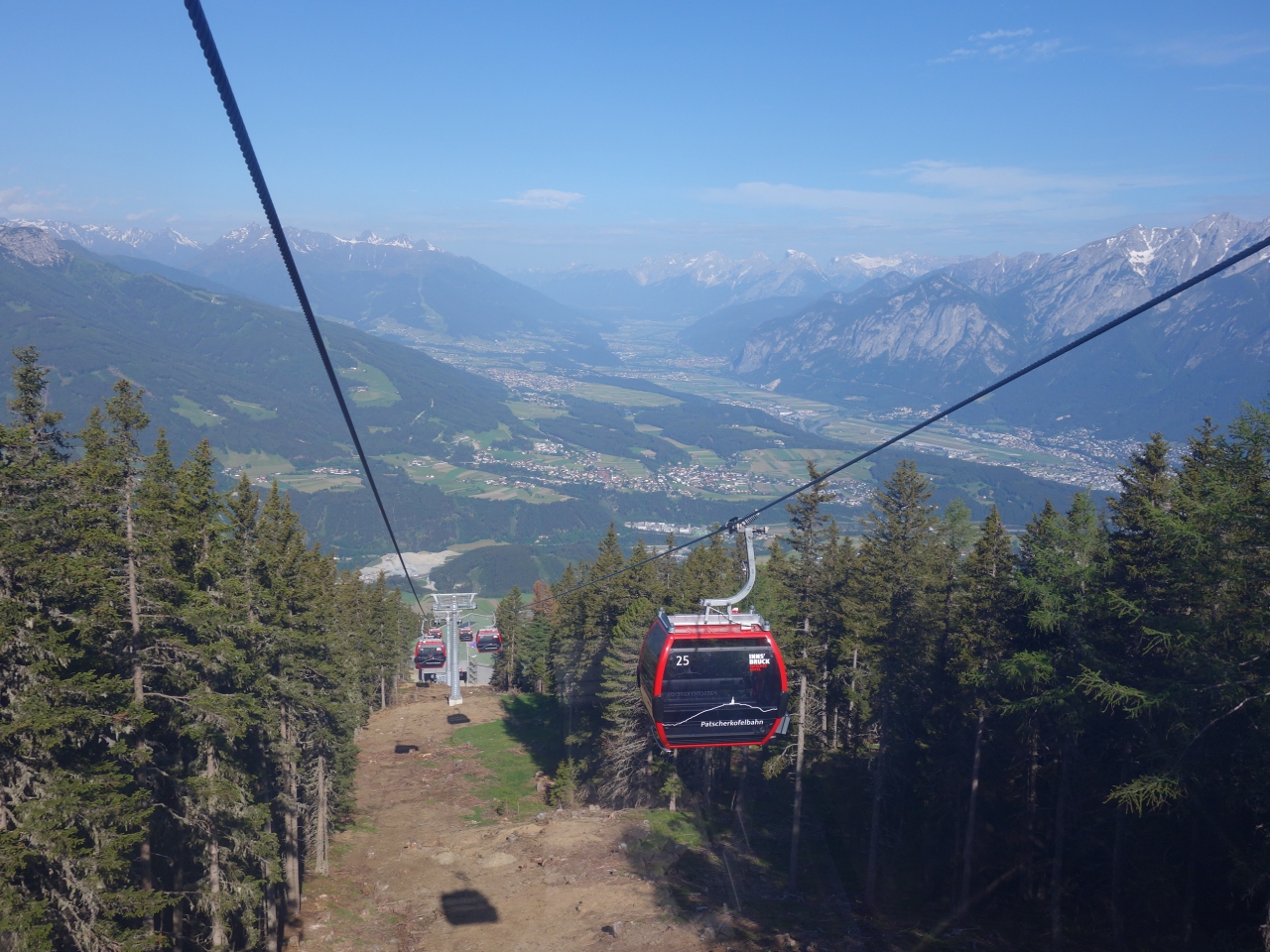 マリア・テレジア通りからバスのJに乗って終点まで。そこからこのロープウエイに乗ります。頂上からはインスブルックの町が一望できます。南からの長めなので順光でよい写真が撮れます。サイコーです。往復20ユーロ。ロープウエイは片道20分ぐらいかな。とても良いところです。ゼッタイのオススメコースです。