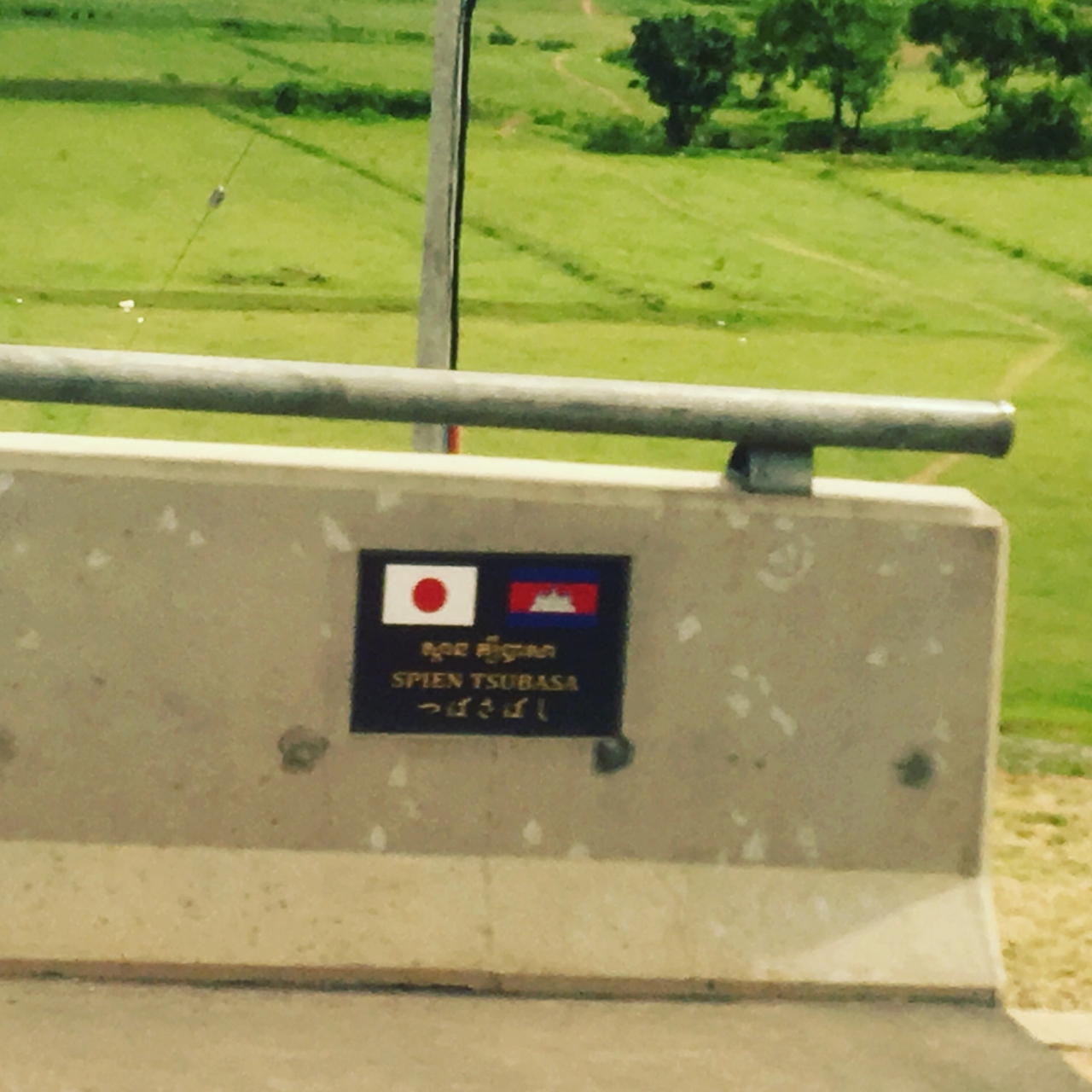 橋を渡りきるところに日本からの援助の印である標があるので、お見逃しなく。