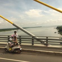 プノンペンからホーチミンへの長距離バスで渡りました。これができるまではカーフェリーを使って川を渡らなければならなかったそうで、便利になったんですね。