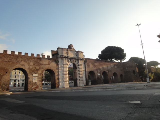 サン・ジョヴァンニ駅をおりて、サン・ジョバンニ・イン・ラテラノ大聖堂へ行く際に通る門です。方向的に、メトロから地上へ上がってきて、この門が見えたら、間違いないです。なかなか幅が広くて、立派な門だと思います。背が低くなっているところを、くぐってきました。