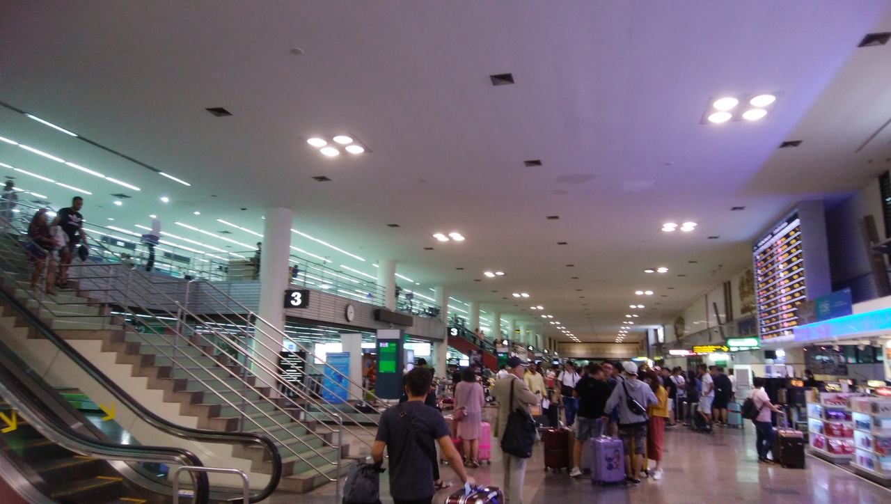 現在はLCCをメインとする空港になっていますが、かつてはバンコクのメイン空港だっただけに広いです。施設の古さは否めないですが、不便があるわけではないです。ラウンジや到着時の免税店などが新たに、設置されていました。公共交通のアクセスに鉄道はなくて不便ですが、市内に向かう空港バスも増便されて便利になってきています。ひっきりなしにバスがでていますが、空港から市内へ行くとき(金曜日の14時半)は混んでいました。