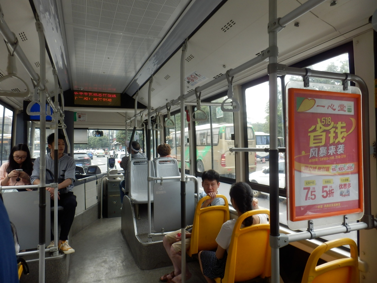 成都では、普通の路線バス、パンダ繁殖研究基地へ行くパンダバス、市内観光地を廻る景区直通車の3種類のバスに乗車しました。